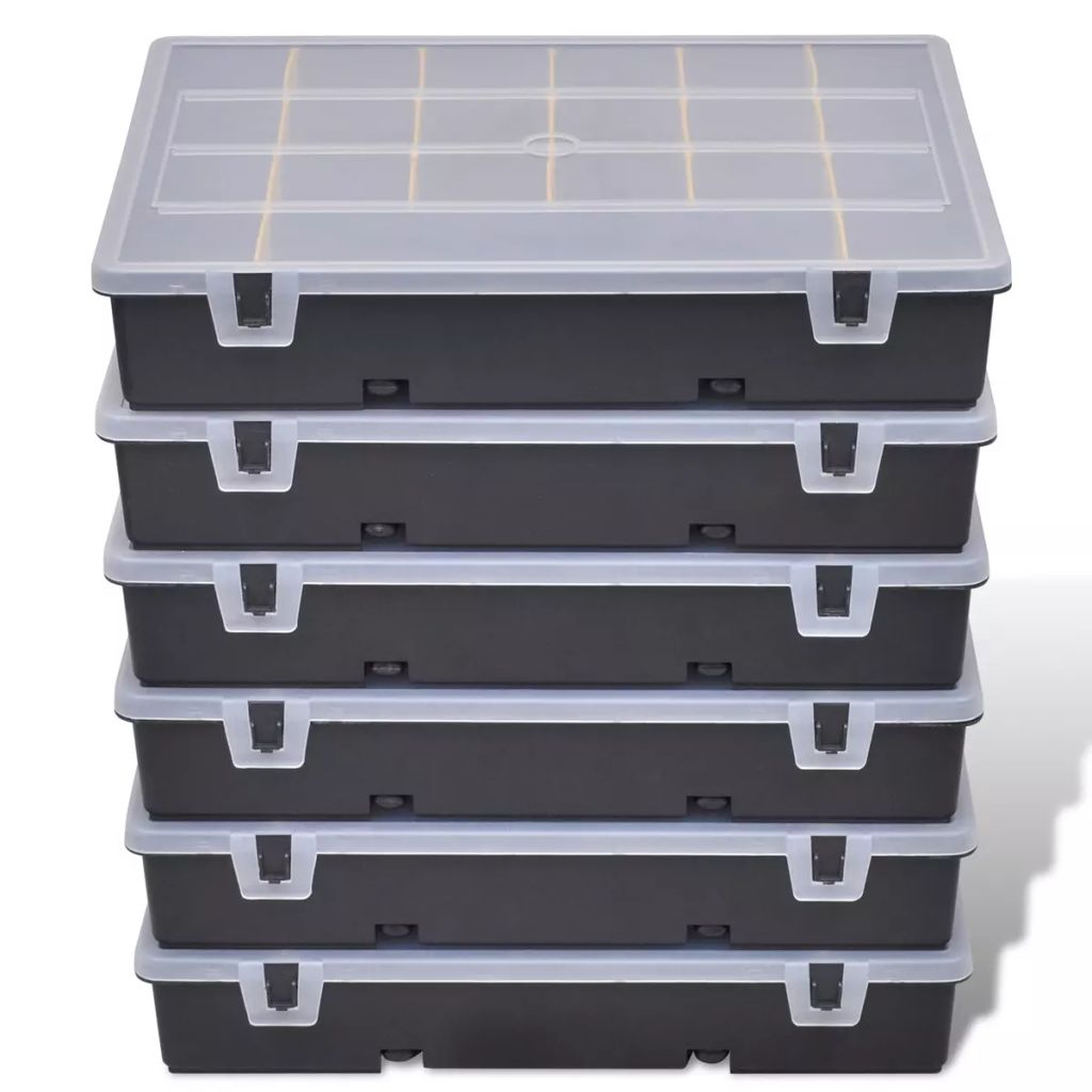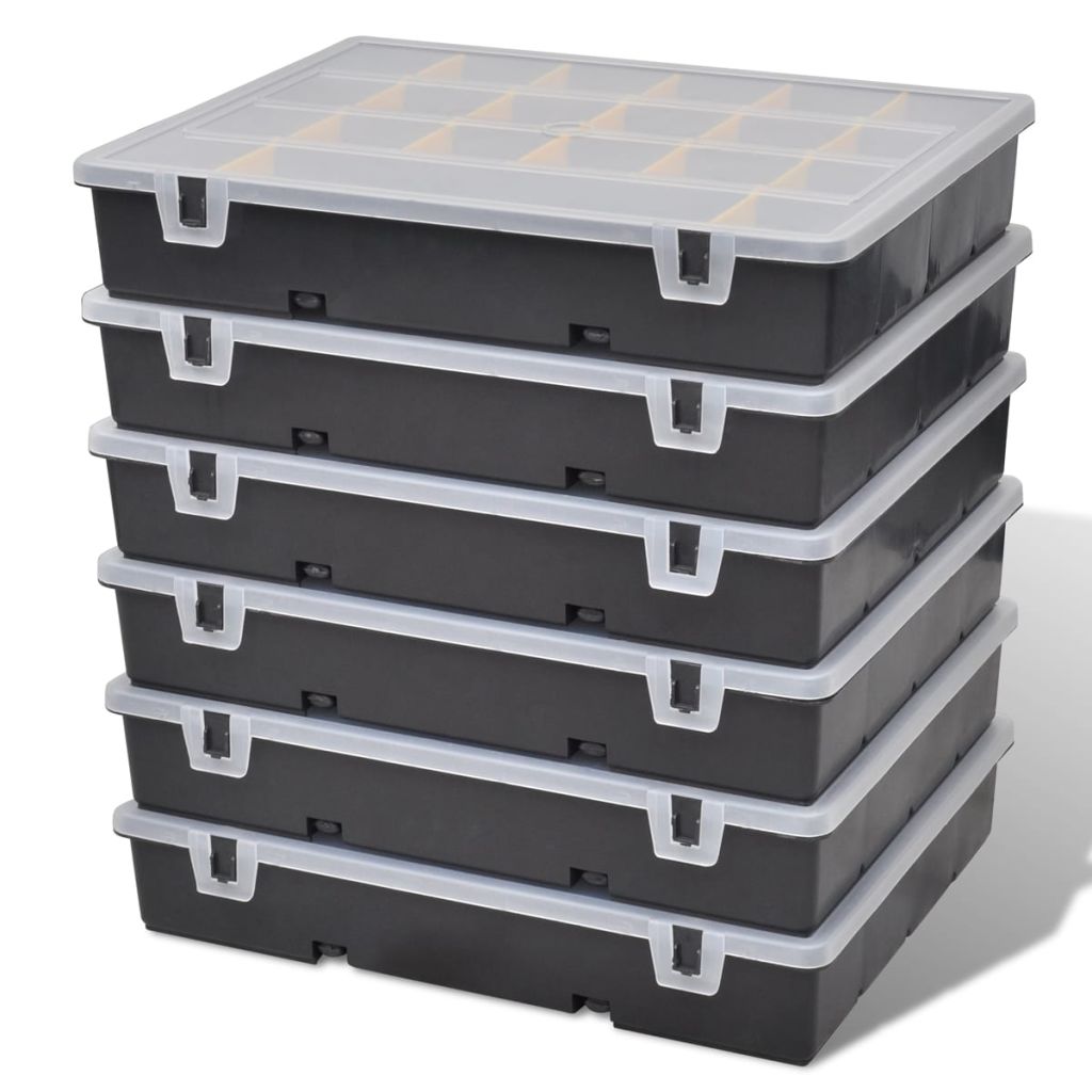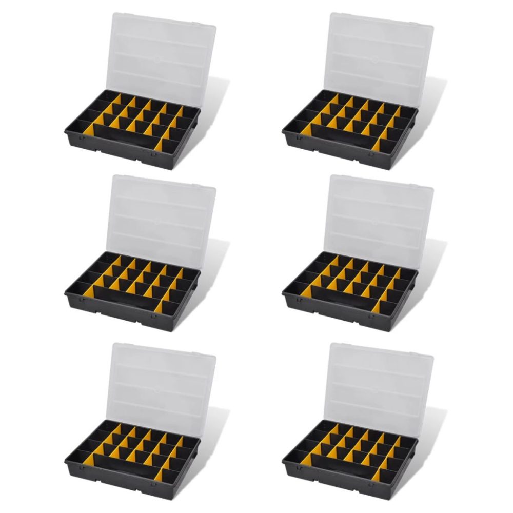 Este conjunto de caixa de ferramentas em plástico robusto, incluindo 6 peças, é ideal para armazenar ferramentas como porcas, parafusos e outras peças pequenas. Cada caixa de ferramentas dispõe de 21 compartimentos, o que certamente irá ajudá-lo a manter as suas pequenas ferramentas em grande forma e, funcionalidade para uso futuro.