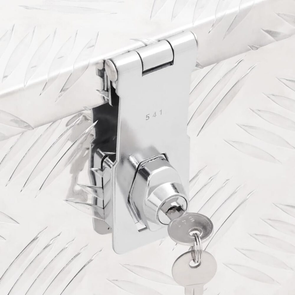Esta caixa de alumínio para todos os fins é uma escolha ideal para embalar, guardar e transportar. Alumínio resistente à ferrugem: a caixa para reboque é feita em chapa de alumínio ondulada, tornando-a resistente à ferrugem e durável.Espaçosa divisão interior: a caixa de ferramentas possui uma espaçosa divisão interior para poder guardar as suas ferramentas, acessórios e outros equipamentos e ferramentas.Sistema de bloqueio: a mala de arrumação está equipada com um sistema de bloqueio para uma maior segurança.Pega prática: a pega prática no organizador faz com que seja mais fácil levá-la consigo para qualquer lado.Design compacto: pode guardar a caixa de alumínio no seu veículo e garagem ou levá-la consigo na sua próxima viagem até ao campismo, graças ao seu design leve e compacto.