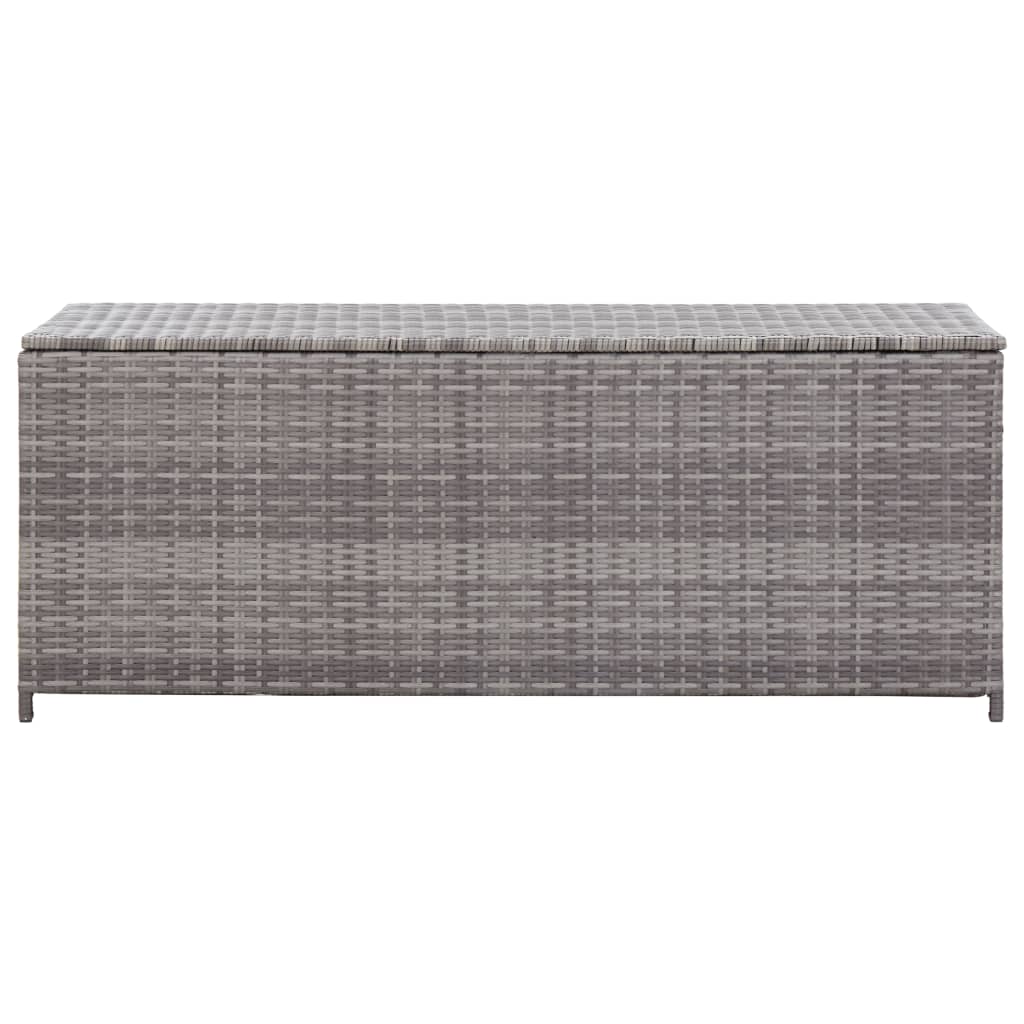 A caixa de arrumação é verdadeiramente versátil, pois pode ser utilizada como banco graças à alta capacidade de carga da tampa! O baú maravilhosamente elaborado tem um design moderno que irá adaptar-se a qualquer espaço de vida ao ar livre. Esta caixa de arrumação para exterior durável é feita de vime de alta qualidade e tem uma estrutura de aço revestida a pó extra resistente.