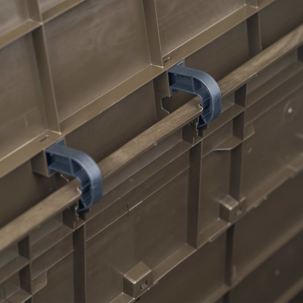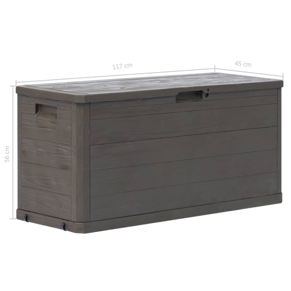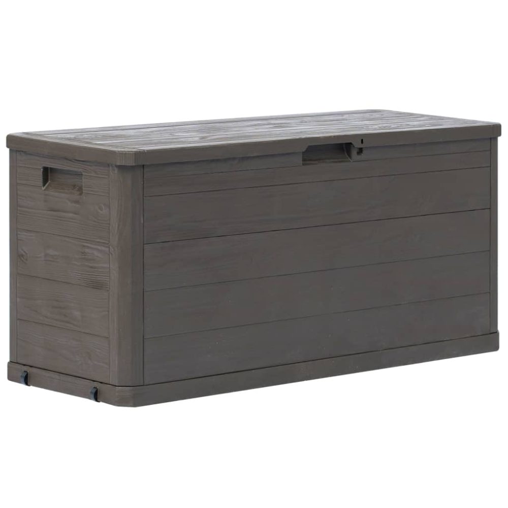 É feita de um plástico durável e resistente às intempéries, o que a torna perfeita para utilização no interior e no exterior. O design com textura de madeira confere à caixa de arrumação para jardim um ar discreto mas intemporal, que se adapta bem a qualquer estilo de decoração.