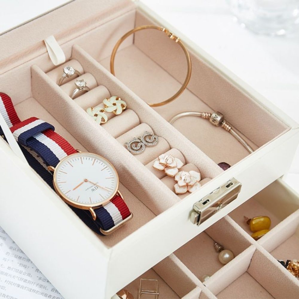 É extremamente prático, você pode organizar e proteger uma grande quantidade de jóias contra danos. Aqui poderá guardar anéis, brincos,colares e relógios.
