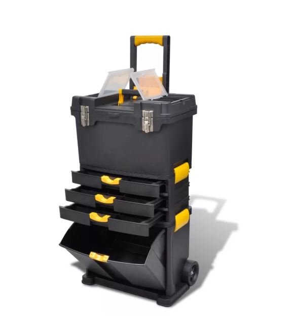 Este caso ferramenta de alta qualidade, equipado com 2 rodas e uma pega, é uma escolha perfeita para proteger suas ferramentas e equipamentos durante o transporte ou para melhor armazenamento. Apresentando um tampa superior, um gabinete inferior e uma secção central com 3 gavetas, neste caso ferramenta robusta oferece-lhe espaço de armazenamento grande e certamente irá ajudá-lo a manter suas ferramentas em grande forma e, assim, trazer comodidade de uso futuro.