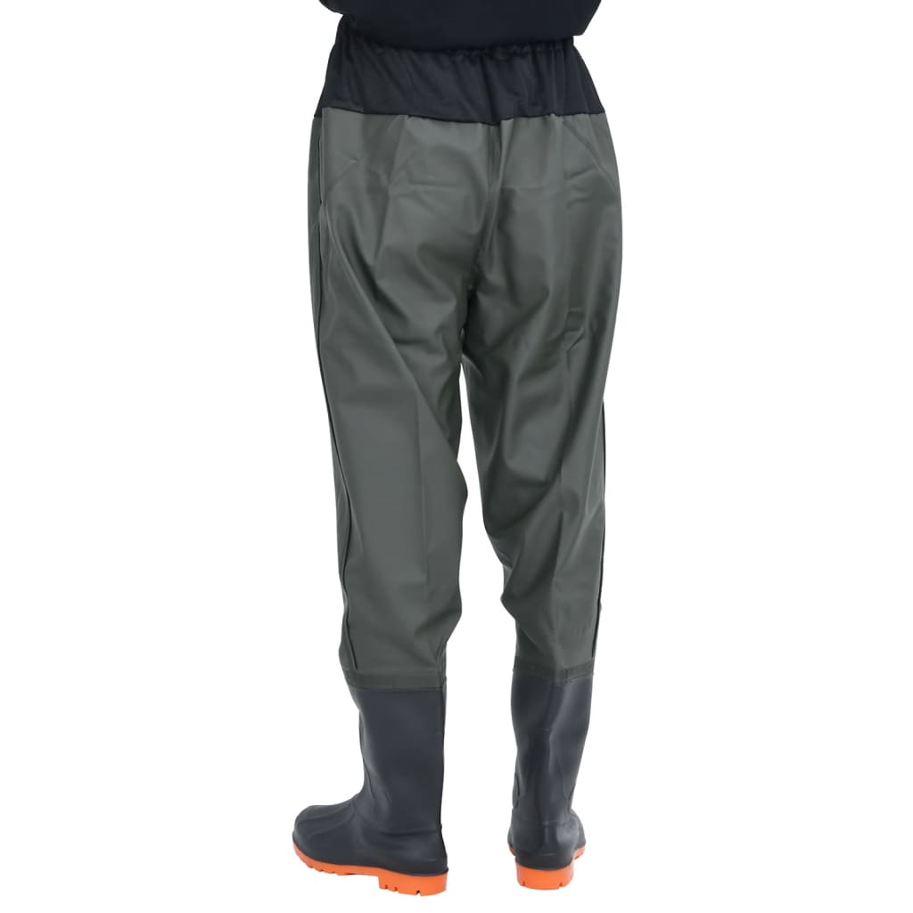 Estas calças com botas são duráveis, flexíveis e adequadas para pesca, caça, agricultura e muito mais. Resistente à água: este tecido de poliéster com revestimento especial é agradavelmente acolhedor por dentro e robusto por fora. Graças às suas costuras acolchoadas e seladas e às botas fixas, estas perneiras são resistentes à água. Proteção: estas jardineiras oferecem proteção contra água, lama e outros elementos, mantendo-o seco e confortável enquanto trabalha ou desfruta de atividades ao ar livre.Botas incorporadas para maior comodidade: com botas incorporadas, estas jardineiras são fáceis de vestir e tirar, poupando-lhe tempo e esforço em comparação com jardineiras e botas separadas. Múltiplas aplicações: estas jardineiras de pesca são excelentes para pescadores e agricultores, passeios casuais na floresta e no campo, para a caça e muito mais.