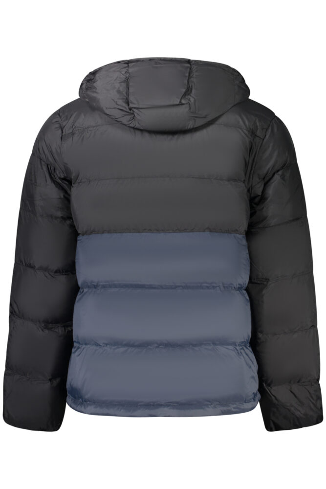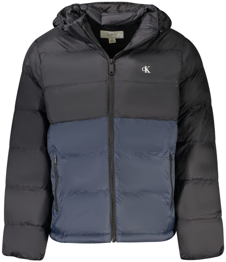 Casaco de mangas compridas com capuz amovível, com 2 bolsos exteriores, 2 bolsos interiores, fecho de correr frontal, detalhes contrastantes em azul, estampado e logótipo da marca.