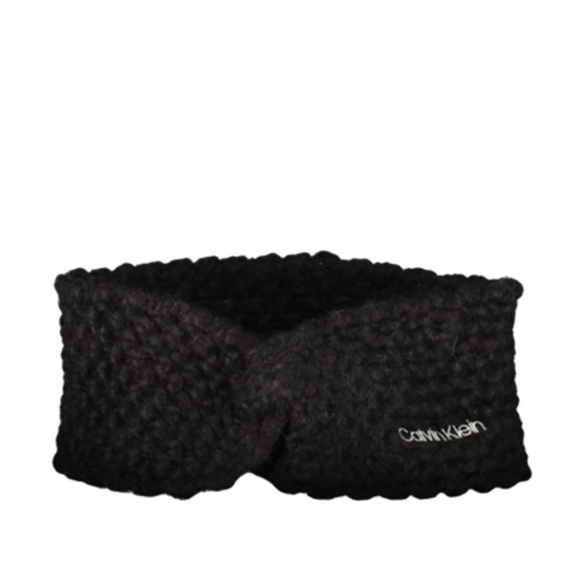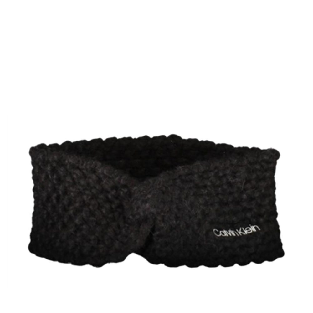Banda preta para cabelo, detalhe contrastante, logotipo bordado