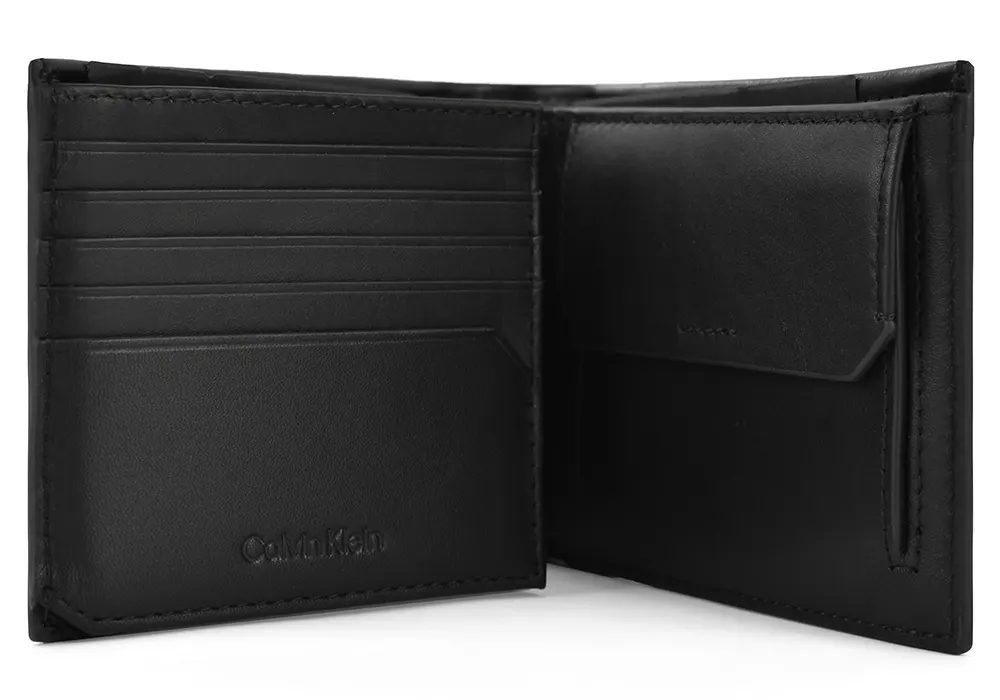 Carteira com 2 compartimentos, porta-moedas, espaços para cartões, bloqueador rfid, logótipo.