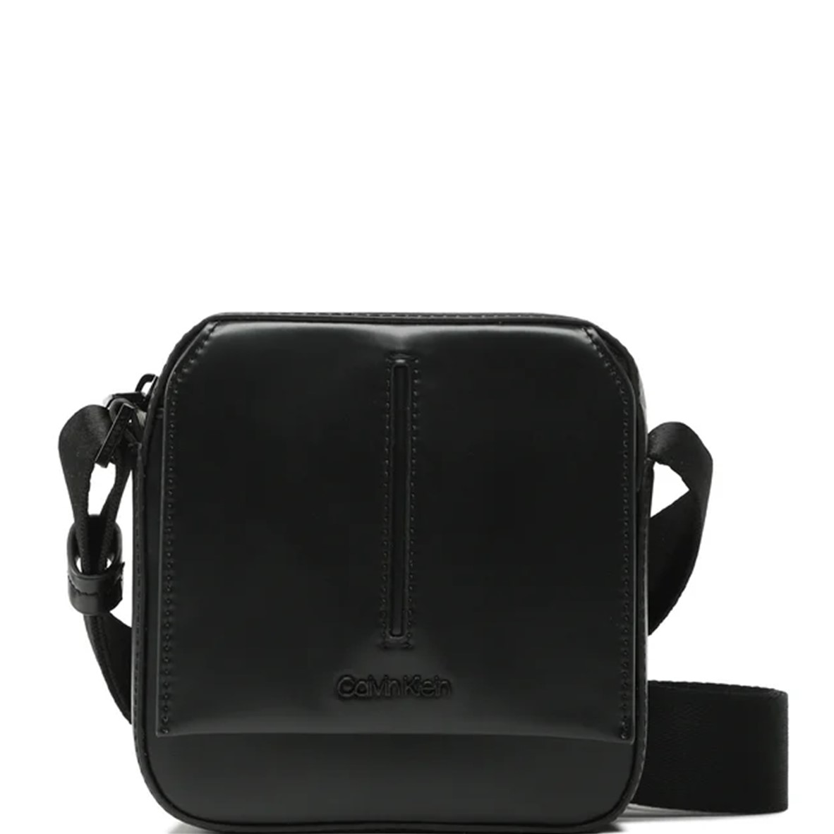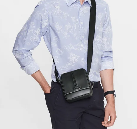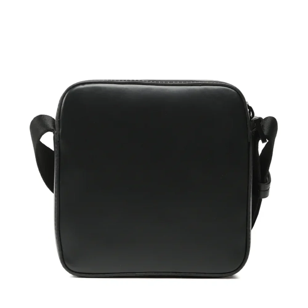 Bolsa com alça ajustável, 1 bolso externo, zíper e fecho de encaixe, detalhes contrastantes, logótipo.