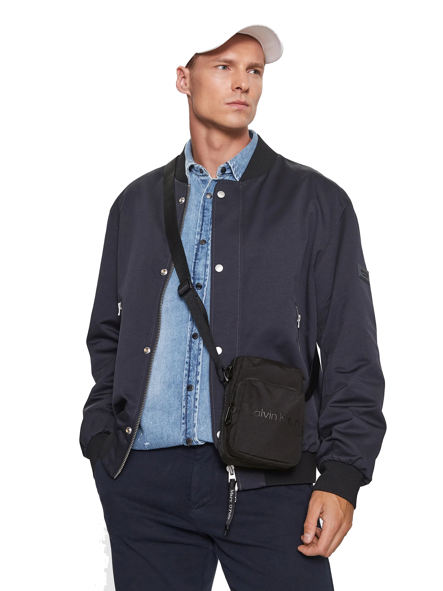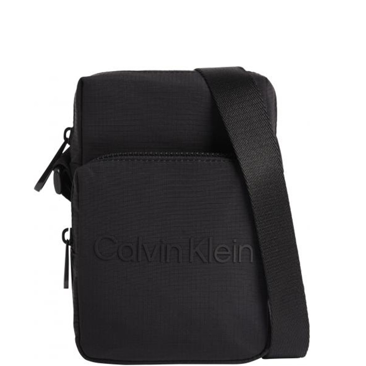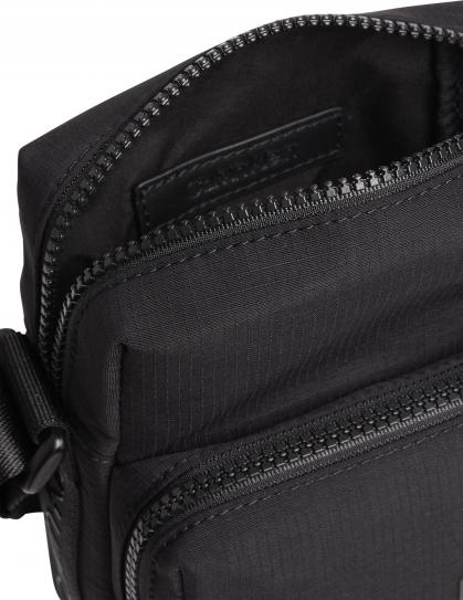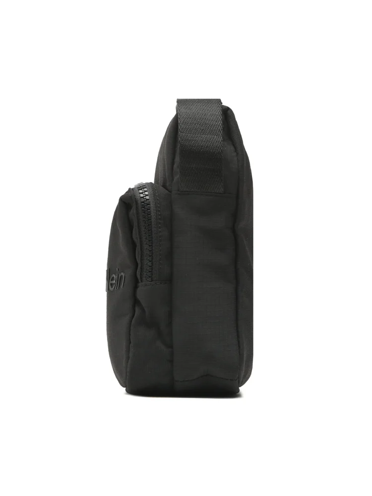 Bolsa com alça ajustável, 1 bolso externo, fecho zip, logótipo.