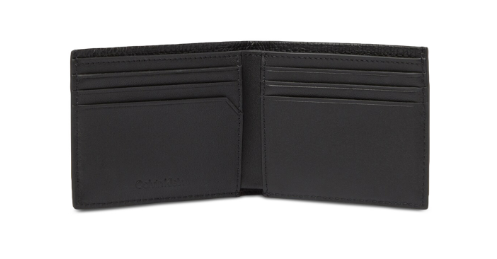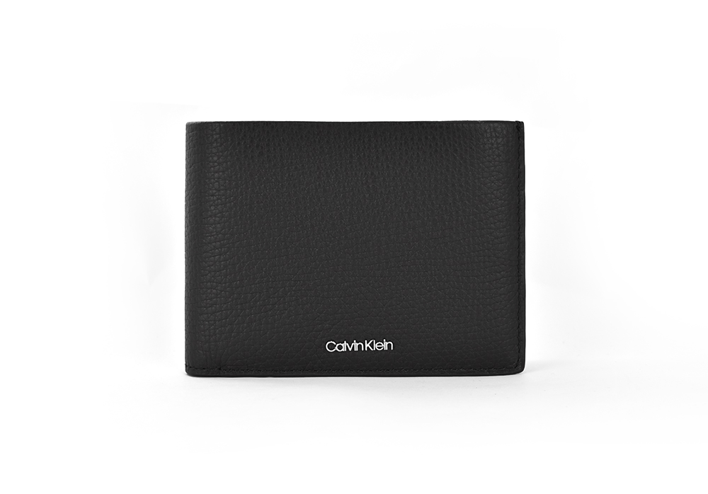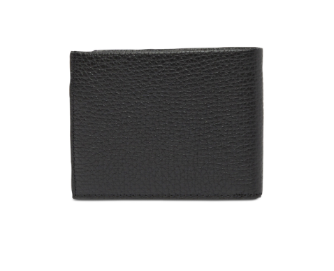 Carteira com espaço interno para cartões, detalhes contrastantes, logótipo.