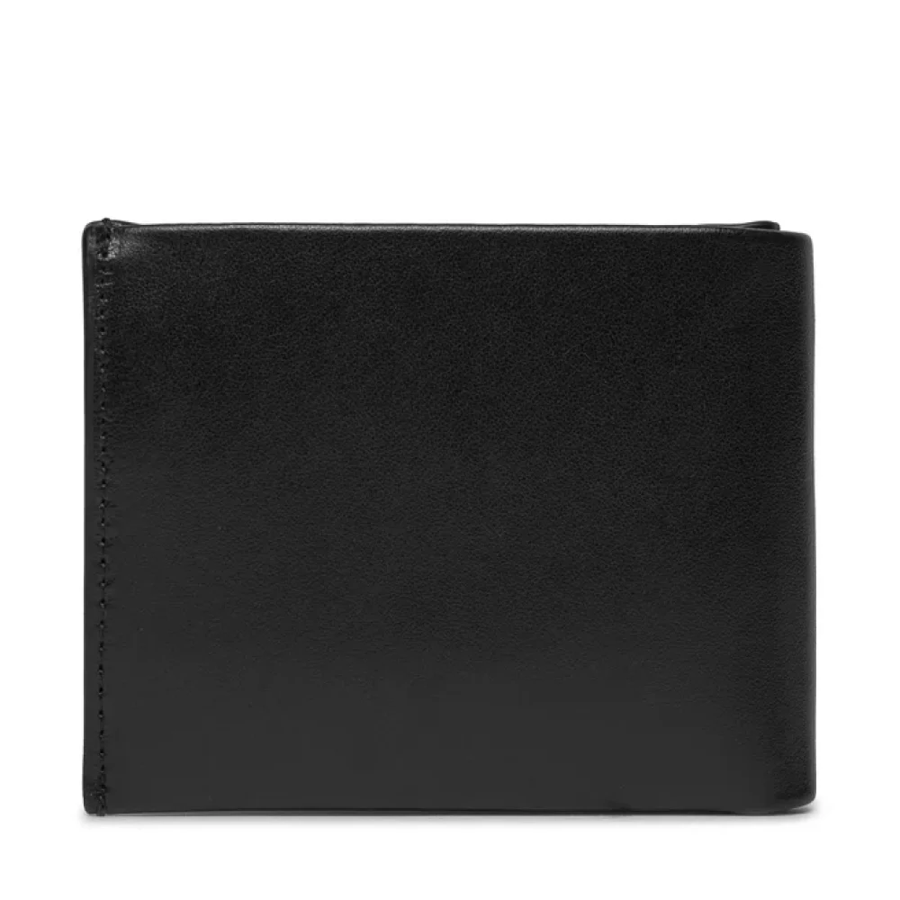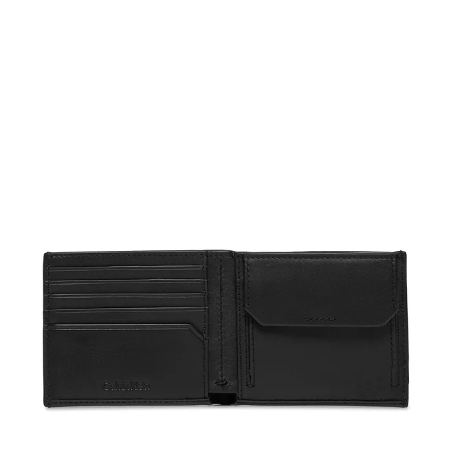 Carteira com 2 compartimentos; Porta-moedas; Espaços para cartões; Bloqueio RFID; Logótipo