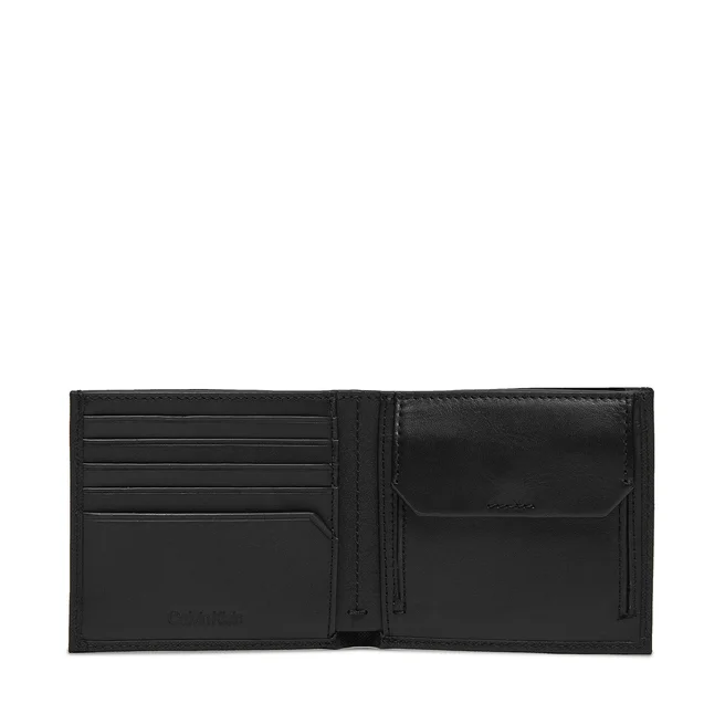 Carteira com 2 compartimentos; Porta-moedas; Espaços para cartões; Bloqueio RFID; Logótipo