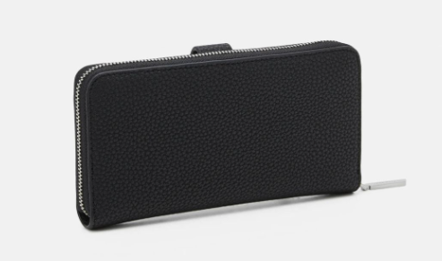 Carteira com 5 compartimentos, porta moedas, espaço duplo para cartões, 1 bolso externo, detalhes em contraste, logótipo.