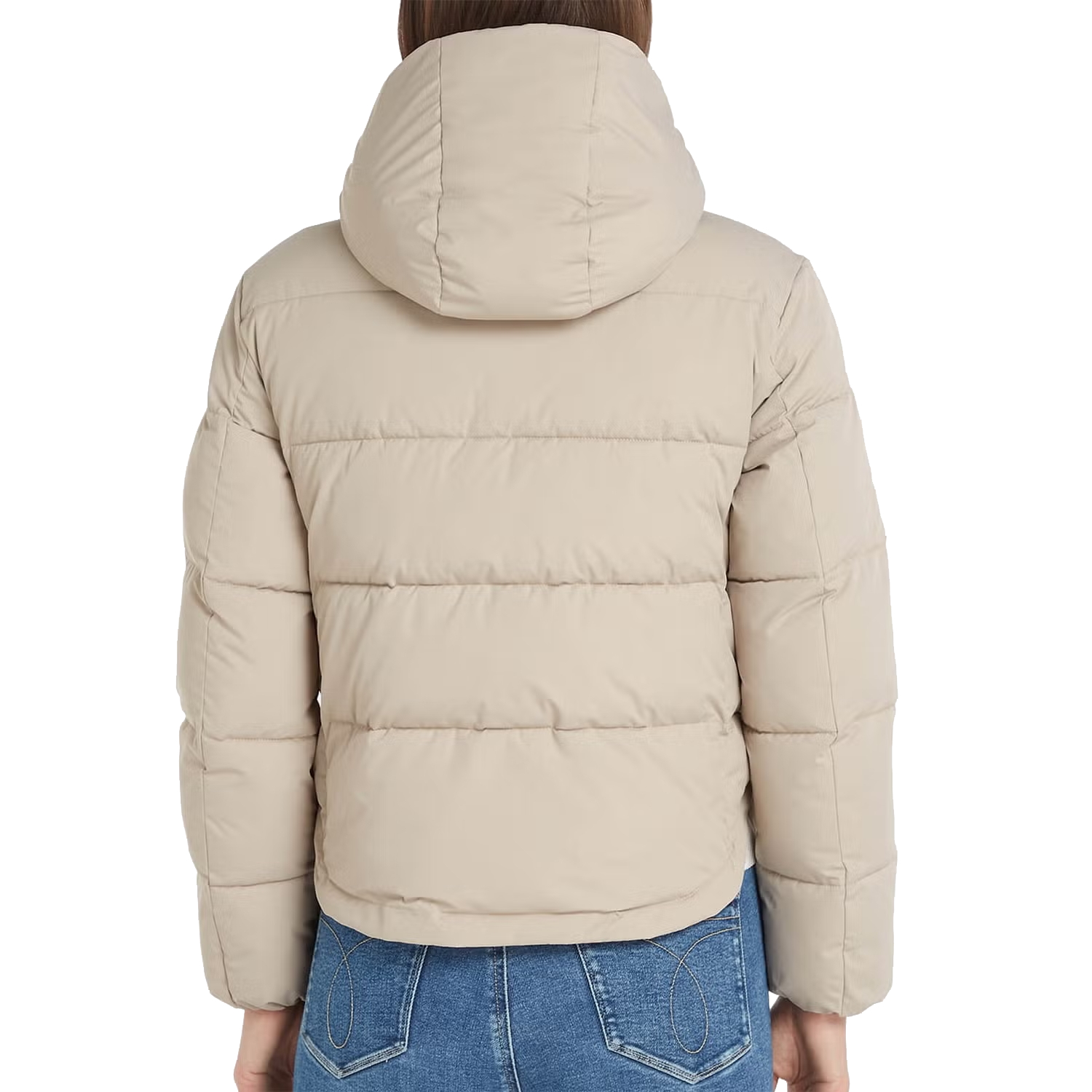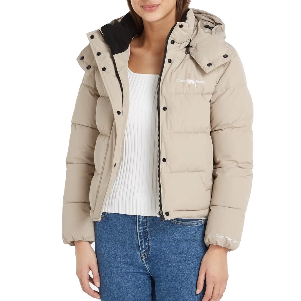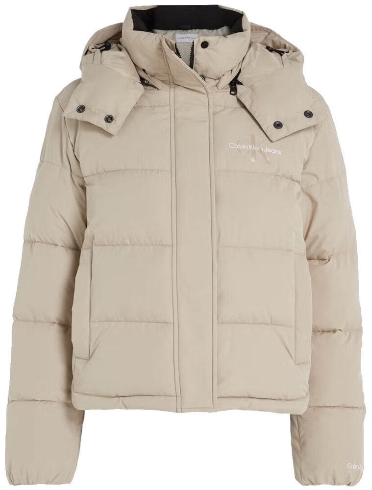Casaco de manga comprida com capuz removível, 2 bolsos externos, fecho zíper e botões, estampa, logótipo.