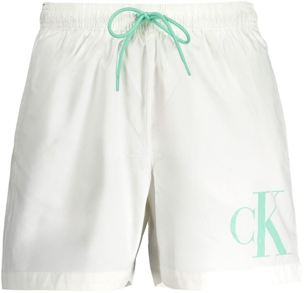Calções de banho médios com slip no interior, 3 bolsos, cintura elástica com cordão e logótipo estampado.