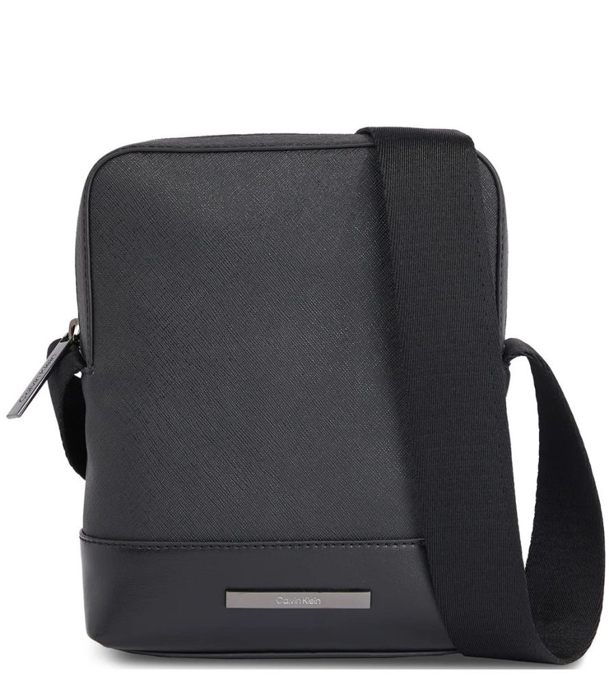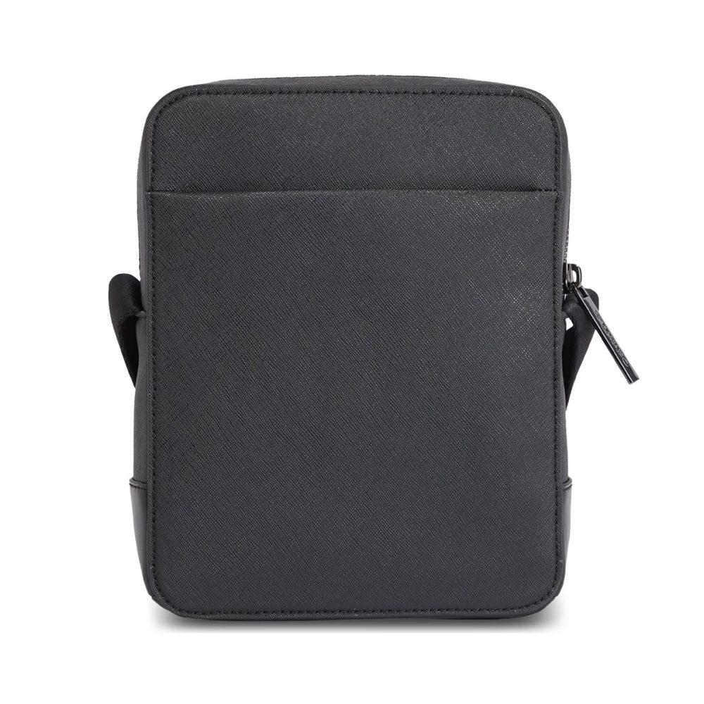 Mala de ombro com alça ajustável, 1 bolso externo e 1 interno, fecho e logótipo.