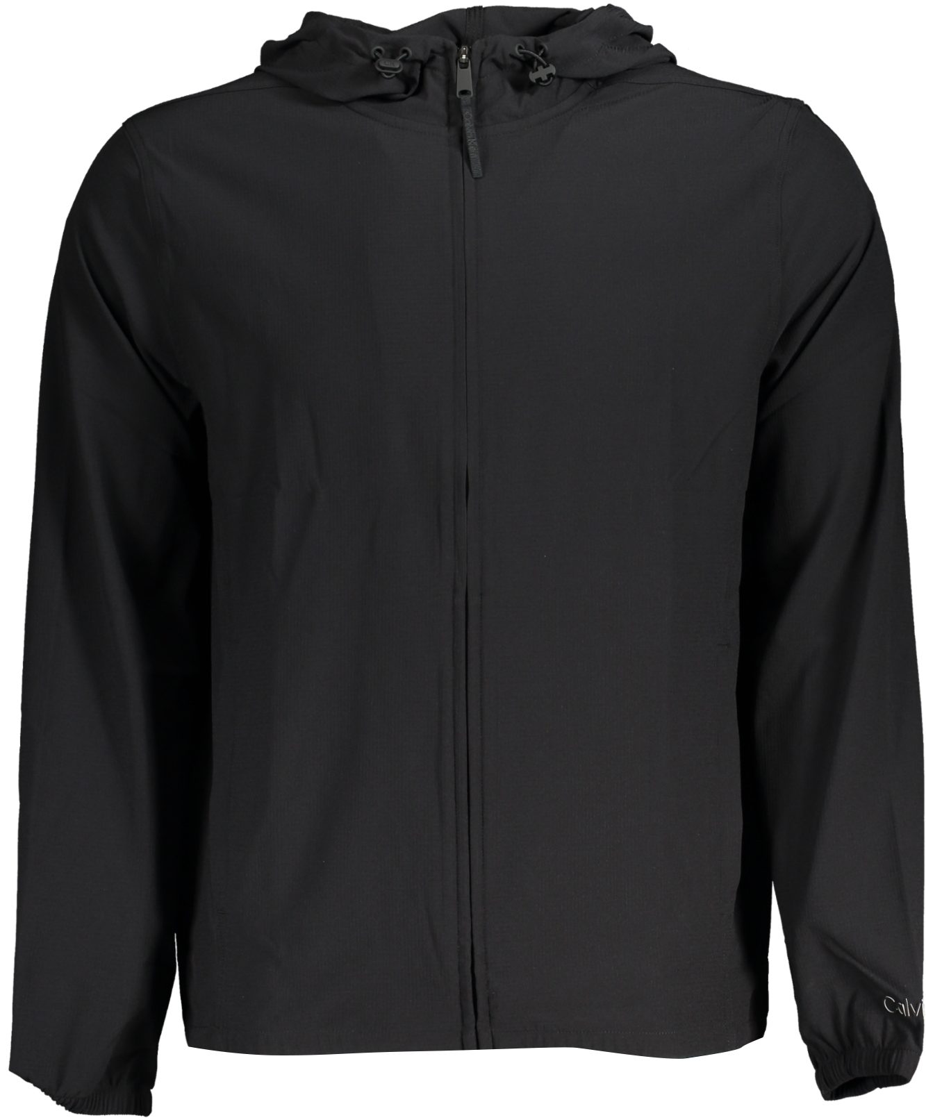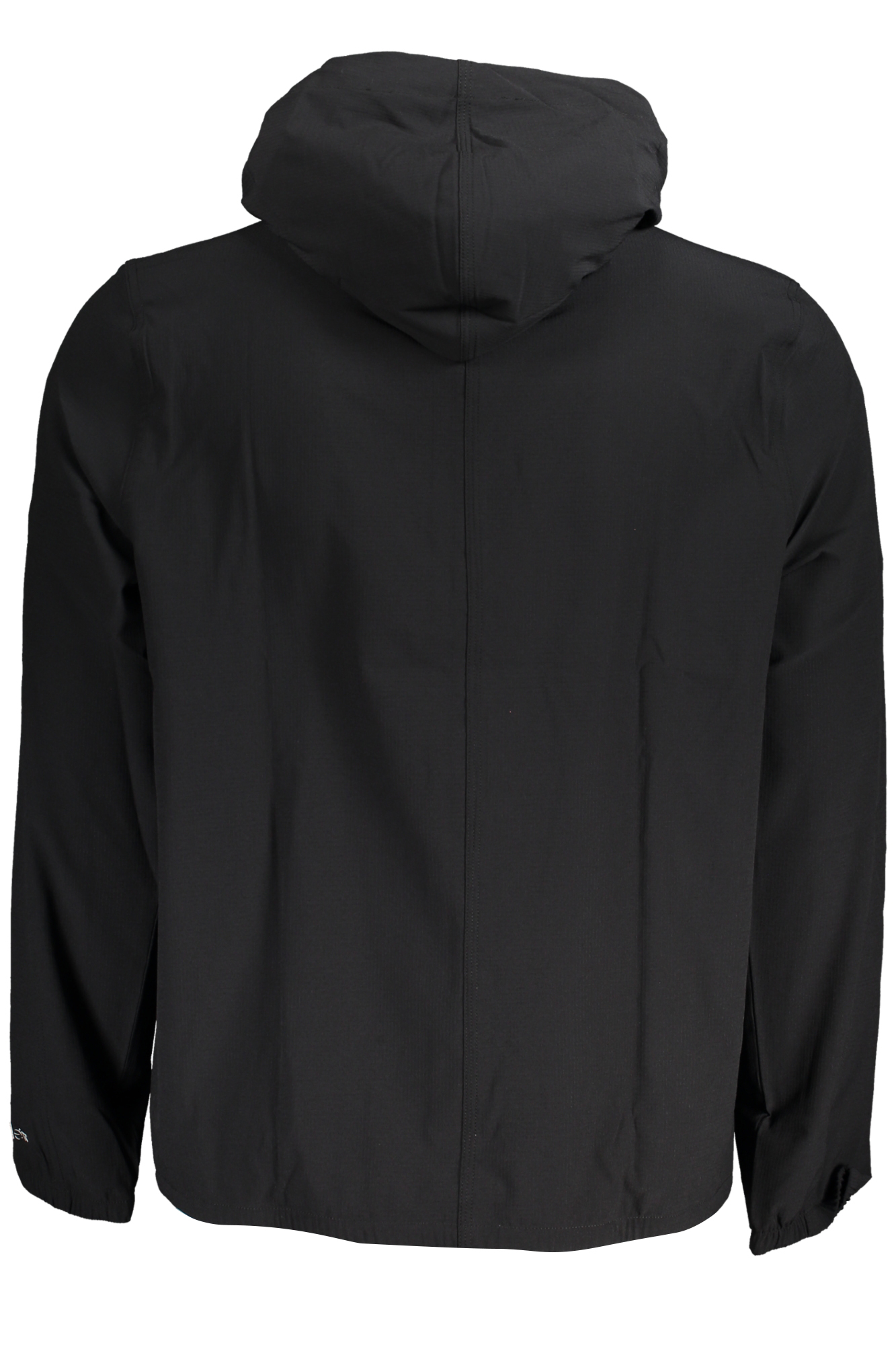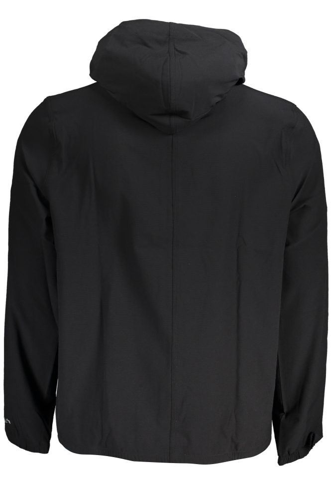 Casaco desportivo com carapuço, tecido elástico e respirável, 2 bolsos, fecho e logótipo.