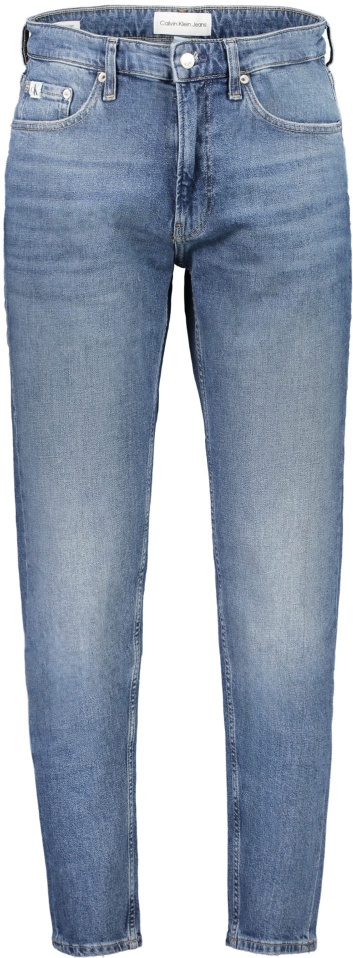 Calças de ganga “Regular Taper Jeans” com efeito lavado, 5 bolsos, botão, fecho e logótipo.