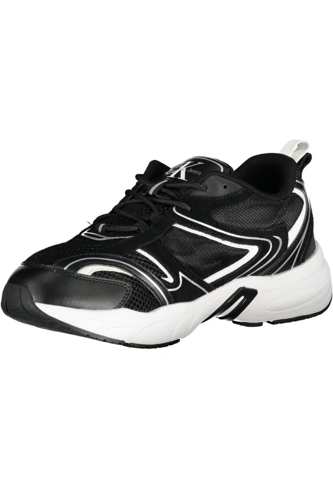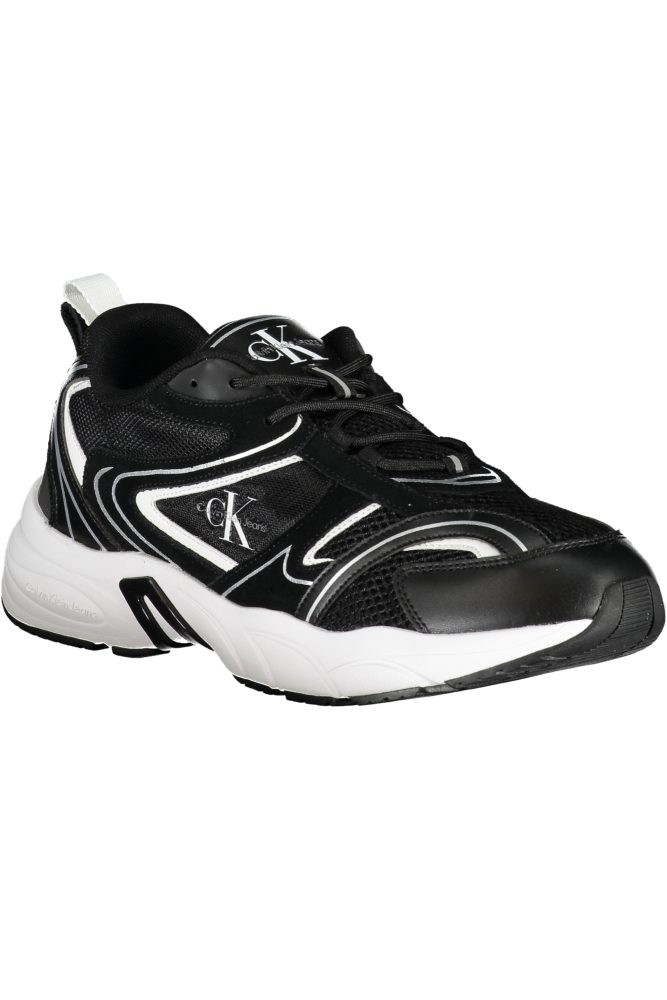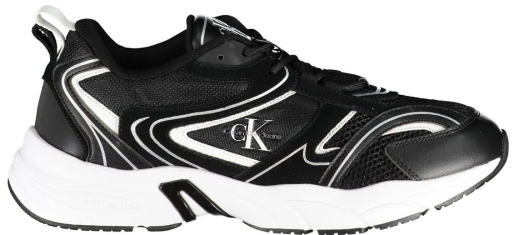 Calçado desportivo com atacadores, detalhes de contraste, estampa, logótipo.