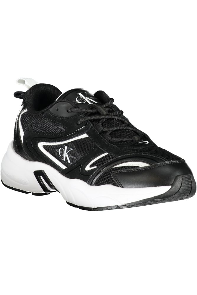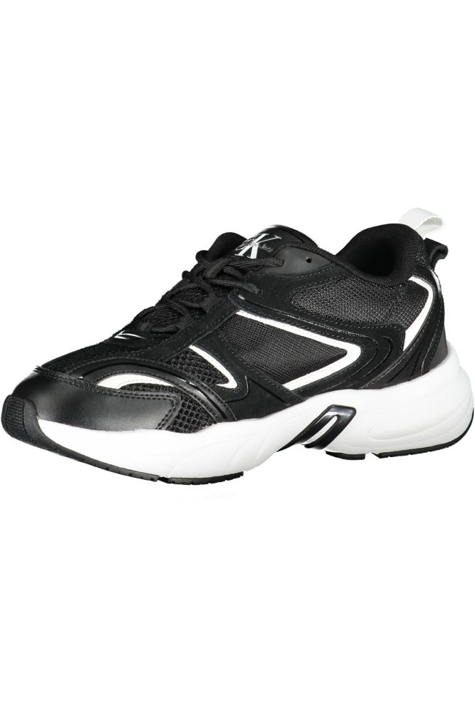 Calçado desportivo com atacadores, detalhes de contraste, estampa, logótipo.