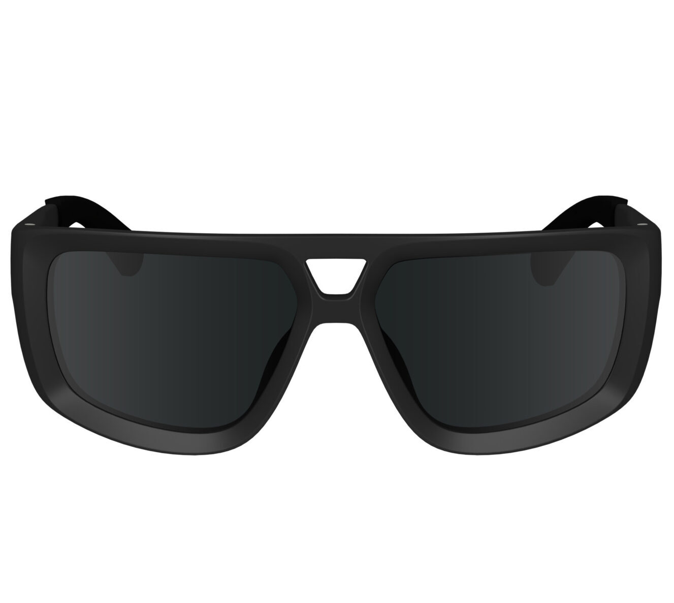 ÓCULOS DE SOL, ARMAÇÃO DE PLÁSTICO INJETADO, LENTE QUADRADA, LENTE PRETA, DETALHES DE CONTRASTE, LARGURA DA LENTE 60 MM, LARGURA DA PONTE 14 MM, COMPRIMENTO DA HASTE 130 MM, LOGOTIPO