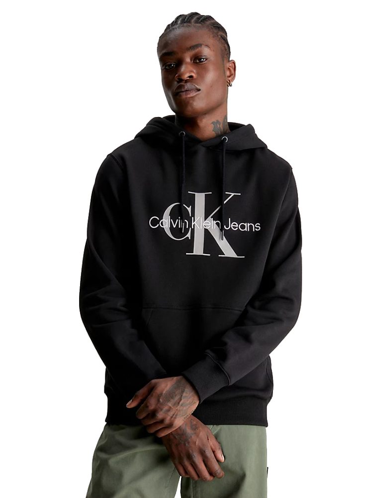 Sweatshirt de manga comprida com capuz, velo, bolso central, detalhes de contraste, estampa, bordado, logótipo.