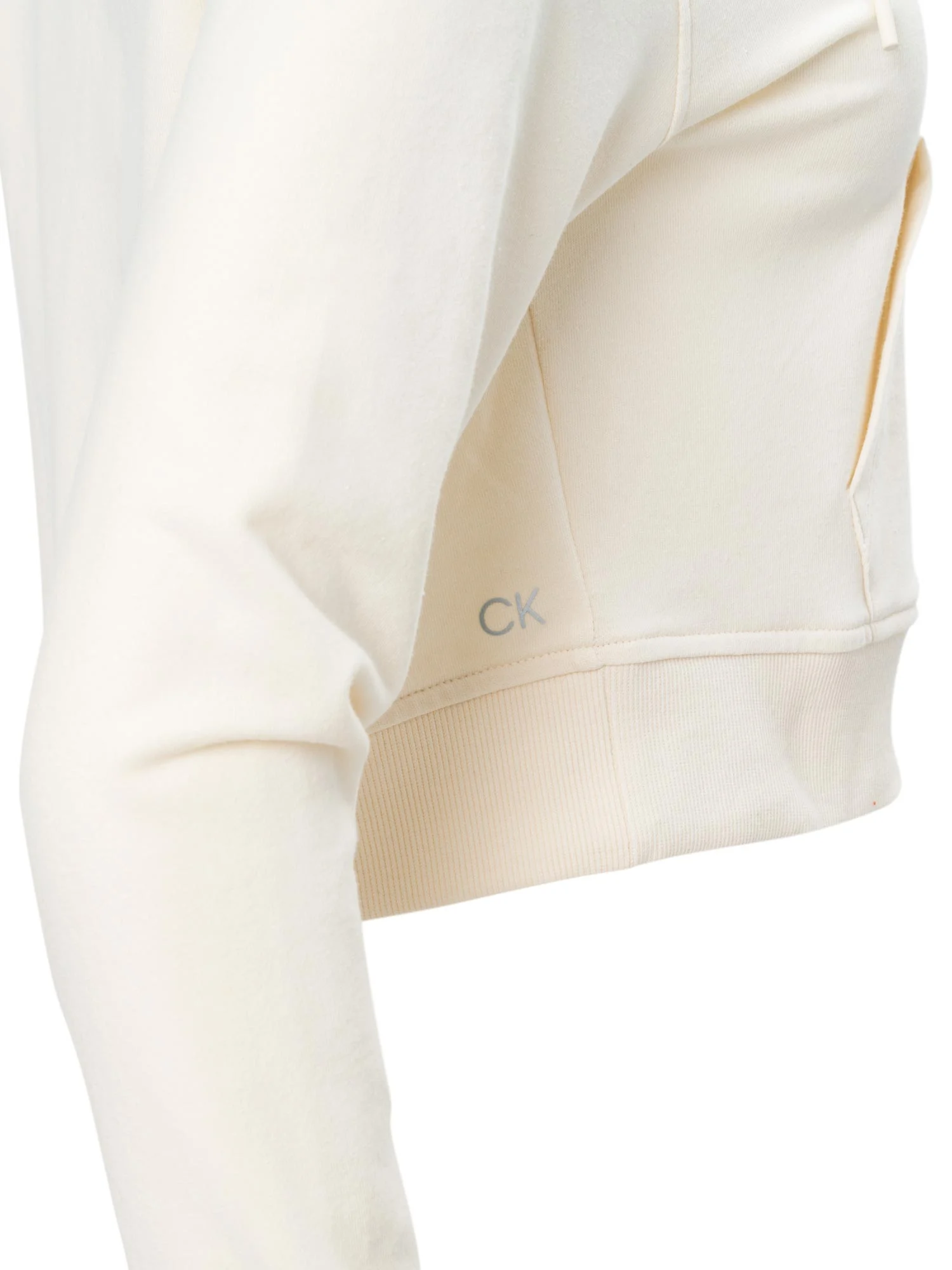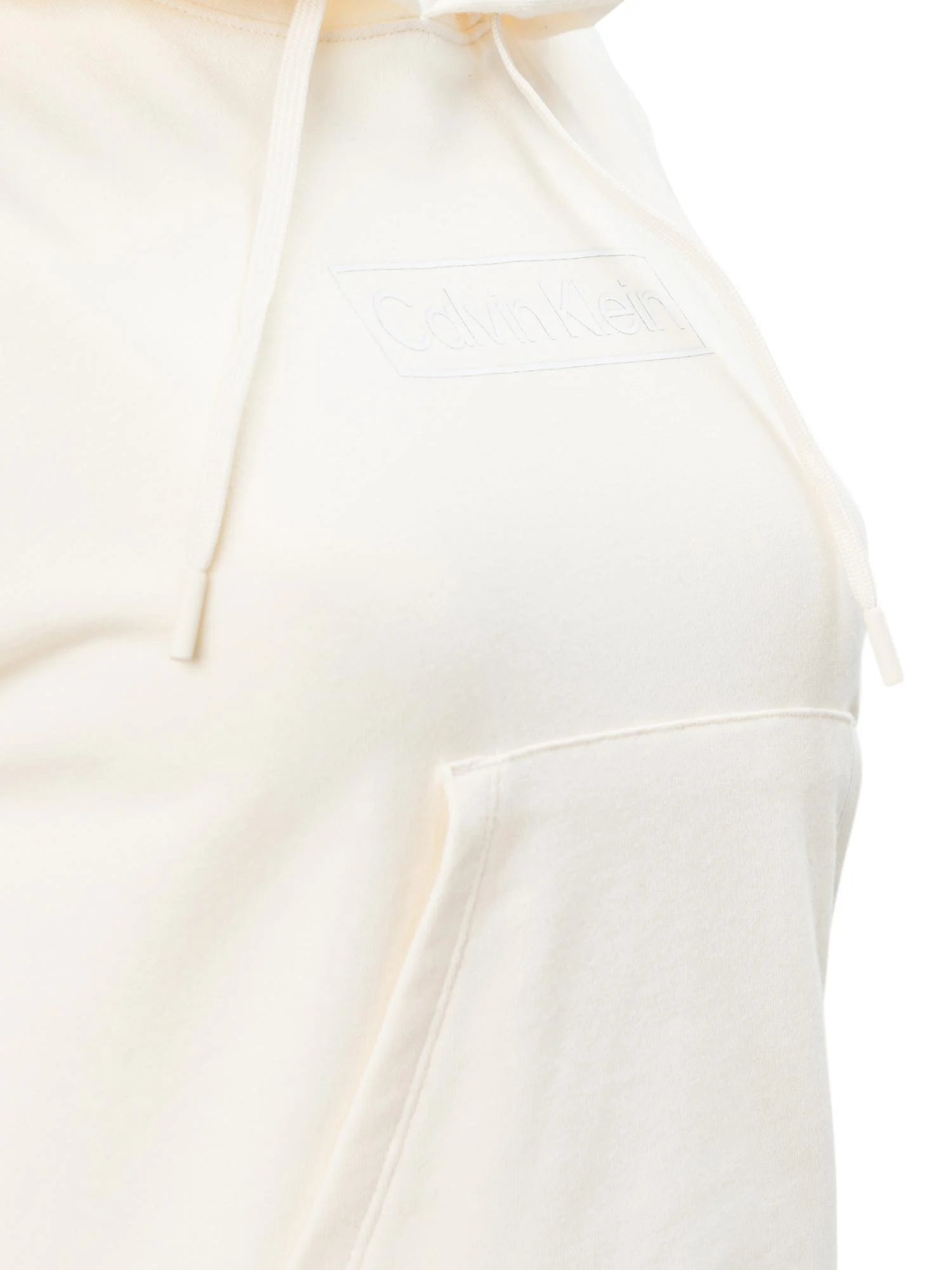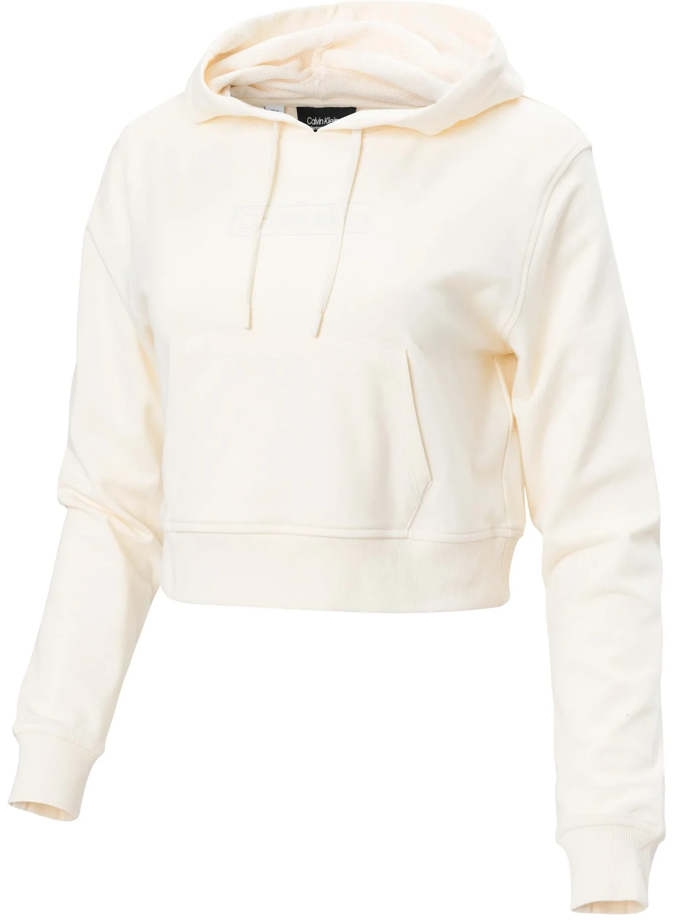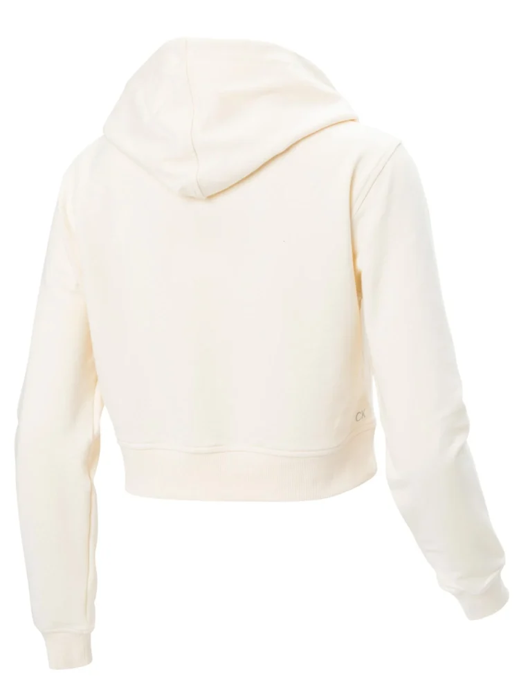 Suéter curto de manga comprida com carapuço, bolso central e logótipo estampado.