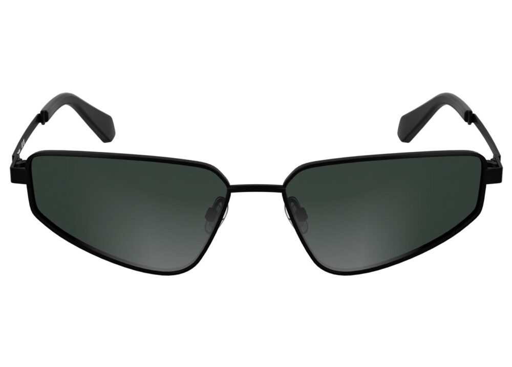 ÓCULOS DE SOL, ARMAÇÃO DE METAL, LENTE RETANGULAR, LENTE FUMÊ, LARGURA DA LENTE 57 MM, LARGURA DA PONTE 15 MM, COMPRIMENTO DA HASTE 140 MM, DETALHES CONTRASTANTES, LOGOTIPO