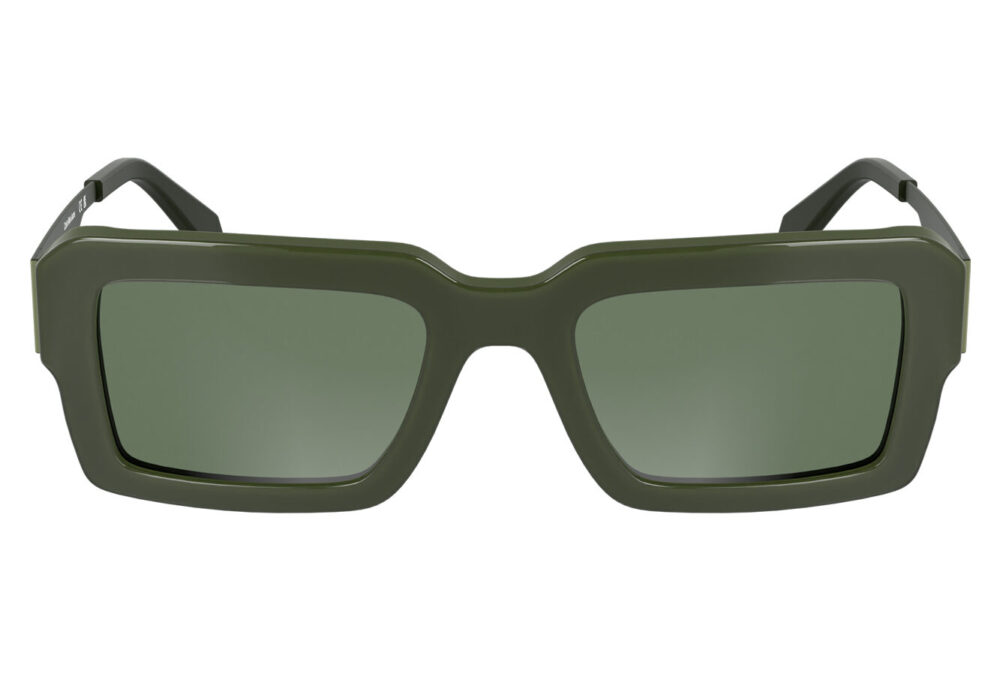 ÓCULOS DE SOL, ARMAÇÃO DE ACETATO, LENTE RETANGULAR, LENTE VERDE, LARGURA DA LENTE 52 MM, LARGURA DA PONTE 20 MM, COMPRIMENTO DA HASTE 140 MM, LOGO