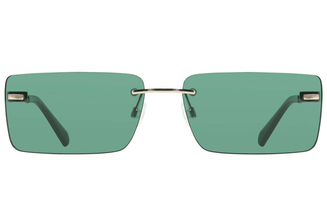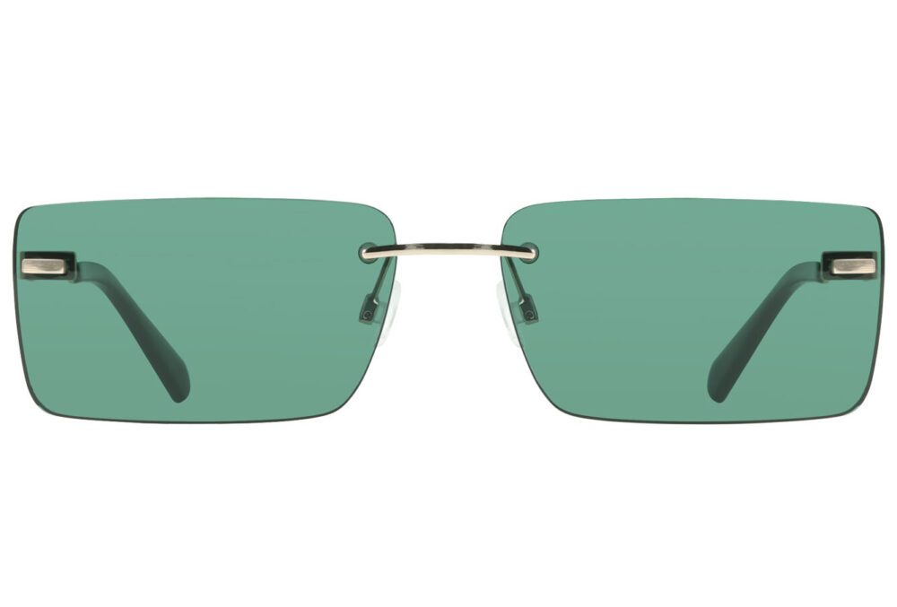 ÓCULOS DE SOL, ARMAÇÃO DE METAL, LENTE RETANGULAR, LENTE VERDE, LARGURA DA LENTE 61 MM, LARGURA DA PONTE 16 MM, COMPRIMENTO DA HASTE 145 MM, DETALHES CONTRASTANTES, LOGOTIPO