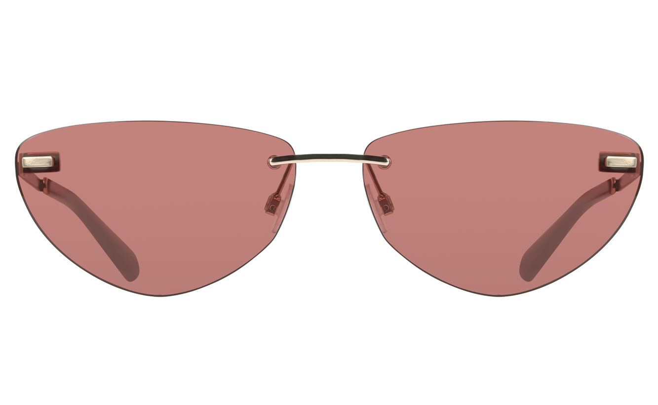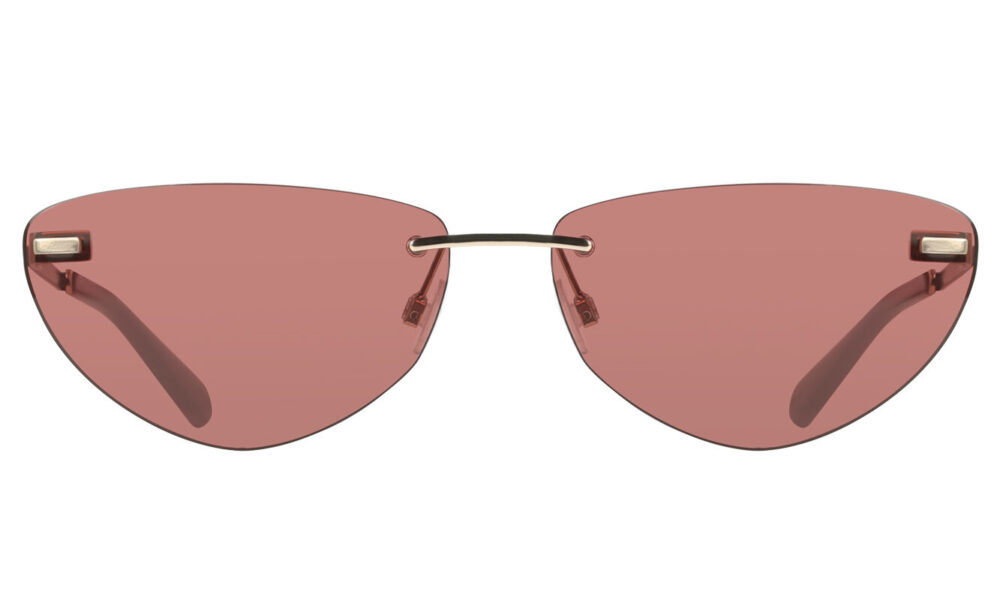 ÓCULOS DE SOL, ARMAÇÃO DE METAL, LENTES EM FORMATO DE GOTA, LENTES ROSA, LARGURA DAS LENTES 63 MM, LARGURA DA PONTE 15 MM, COMPRIMENTO DAS HASTE 140 MM, DETALHES CONTRASTANTES, LOGOTIPO
