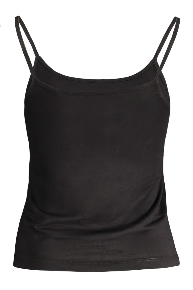 Top de alças finas com gola redonda e logótipo bordado e estampado.