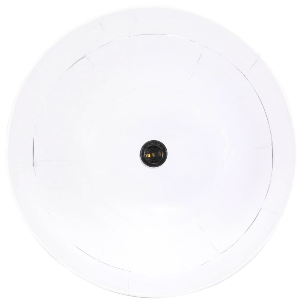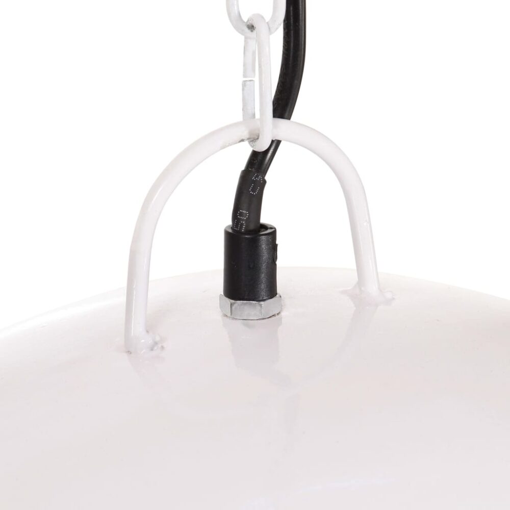 O abajur do candeeiro em ferro, com um acabamento a branco, adequa-se perfeitamente a um interior rural ou industrial. O candeeiro de teto possui um casquilho E27 para uma lâmpada de, no máximo, 25 watts. Pode escolher e instalar lâmpadas E27 com várias cores claras, criando um ambiente de relaxamento e descanso. A entrega também inclui os materiais de montagem.