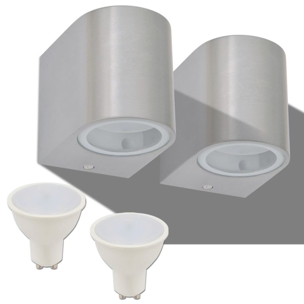 Candeeiros parede LED inferior p/exterior 2 pcs redondo - PORTES GRÁTIS
