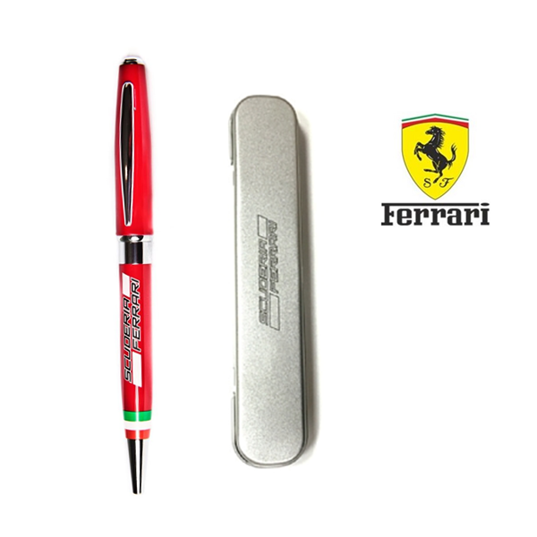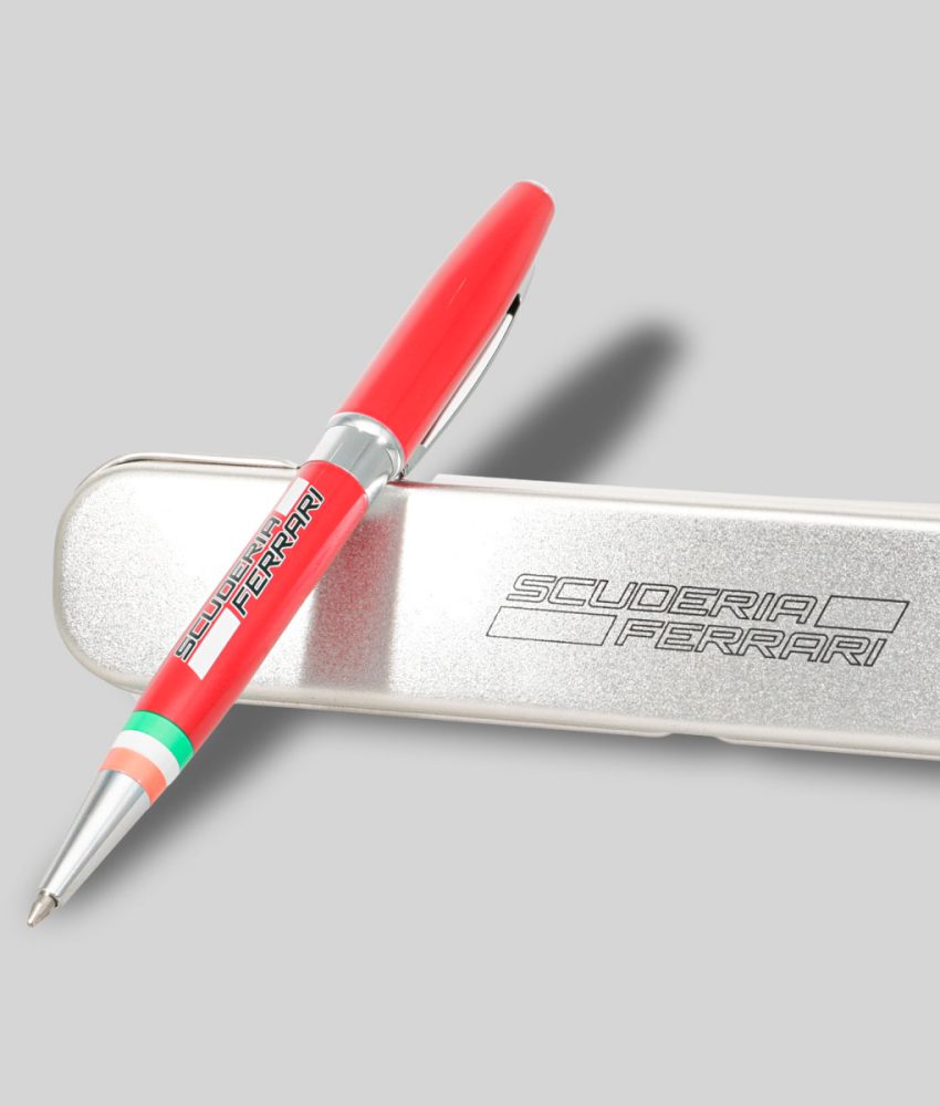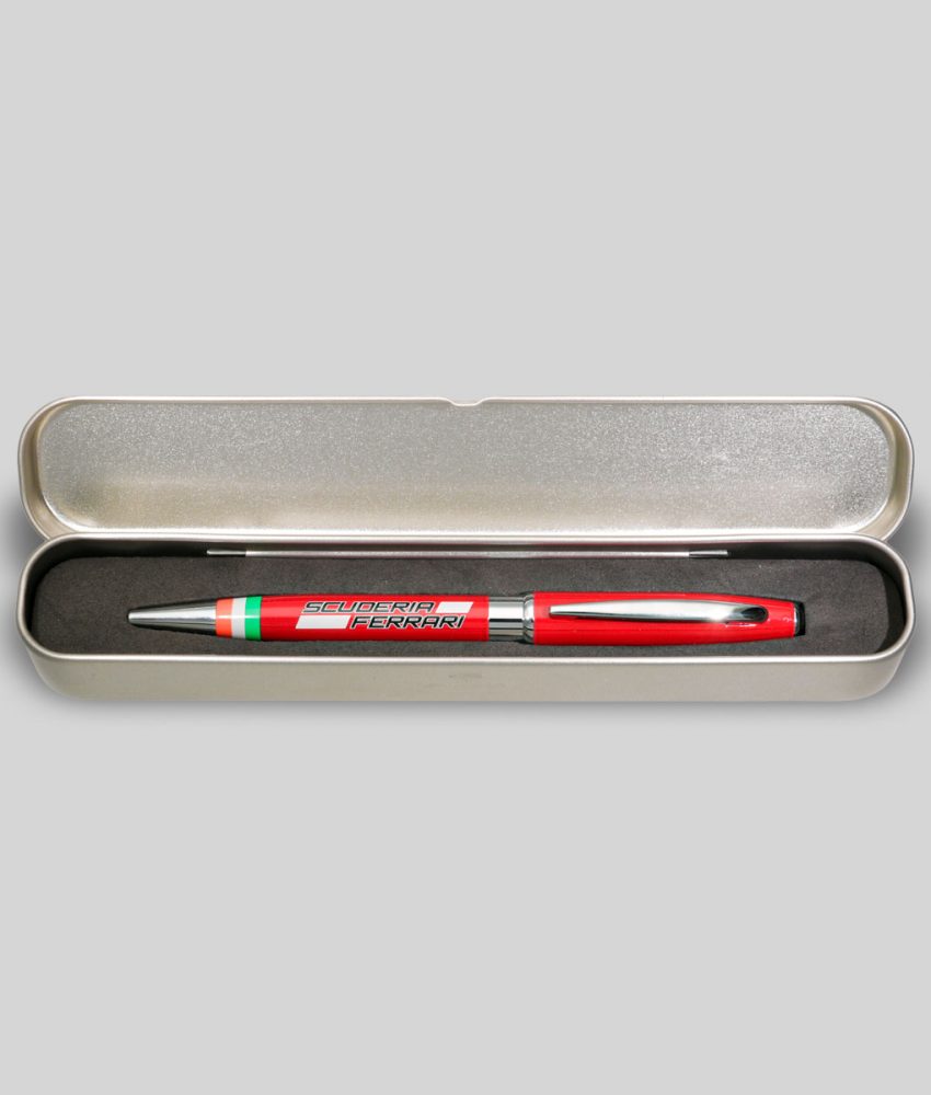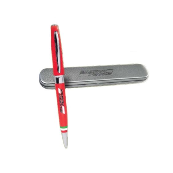 Caneta em metal na cor vermelho e assinada Scuderia Ferrari.