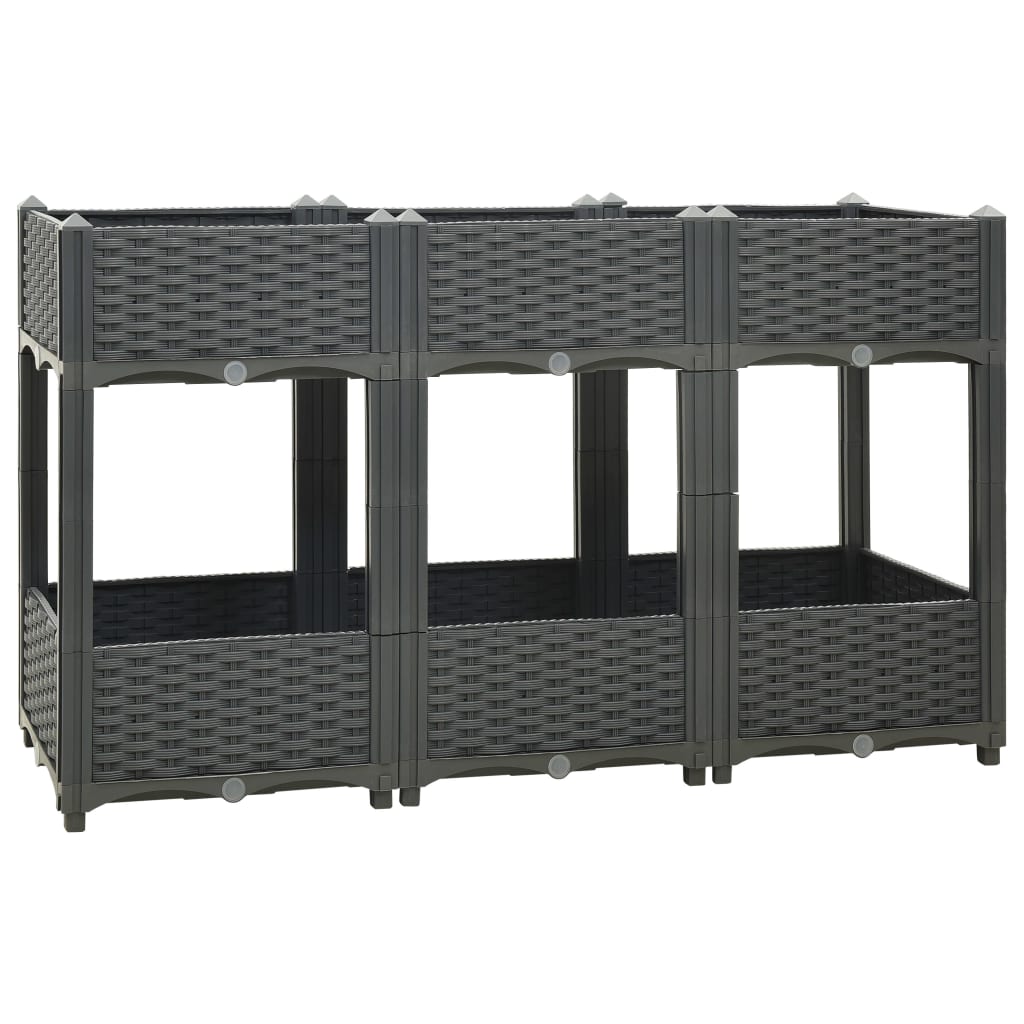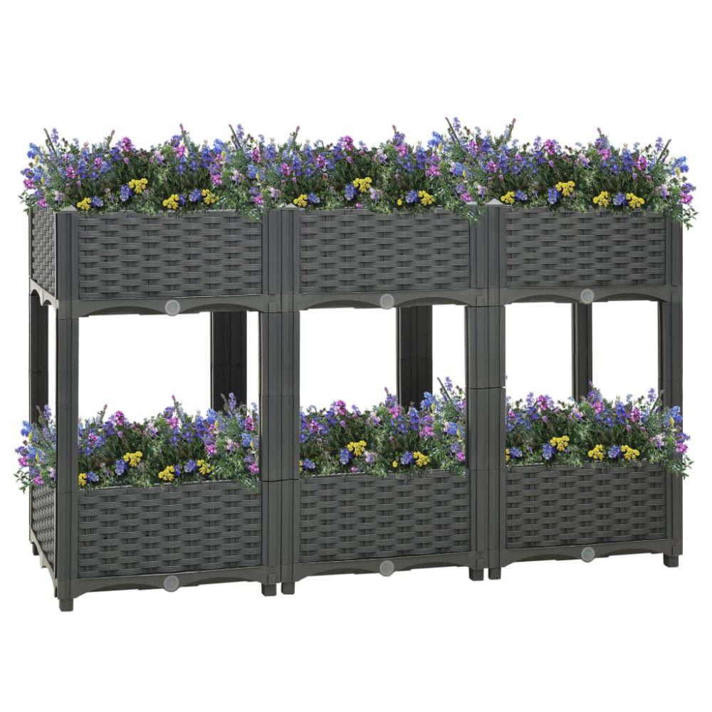 Esta floreira com duas prateleiras, é feita de polipropileno, o que a torna robusta, resistente ao clima e adequada para utilização ao ar livre. O vaso de jardim é fundo e largo o suficiente para acomodar uma grande quantidade de terra e oferece um amplo espaço para as suas plantas, vegetais, ervas e flores. Crie um lindo cenário para as suas plantas com este canteiro elegante!