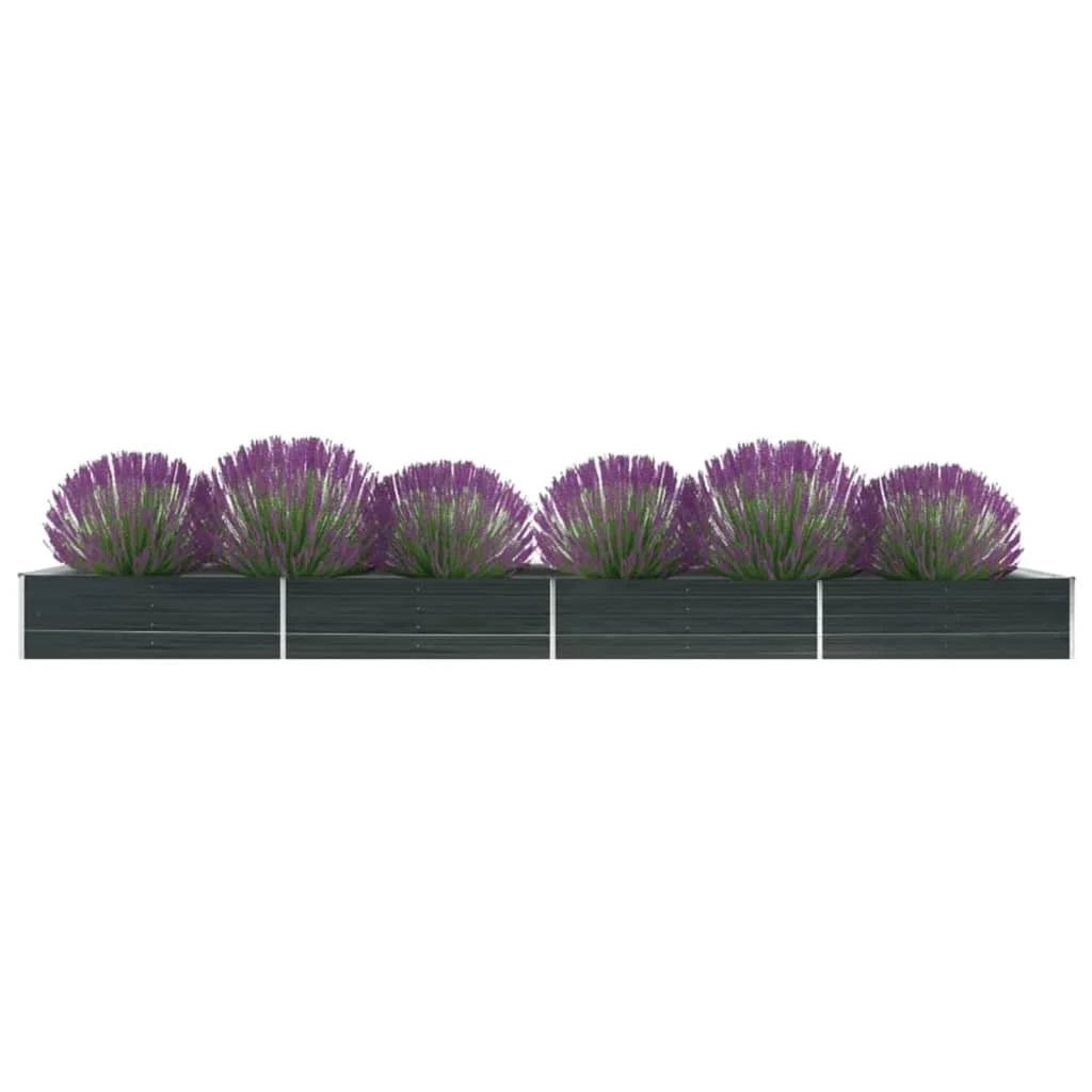 O canteiro elevado de jardim é suficientemente fundo e largo para conter uma grande quantidade de solo e fornecer um amplo espaço para as suas plantas, vegetais, ervas e flores. Feita de aço galvanizado robusto a floreira é resistente às intempéries, sendo portanto muito prática para utilização no exterior.