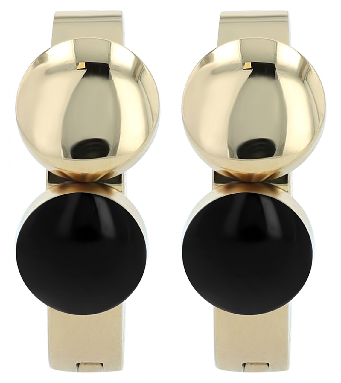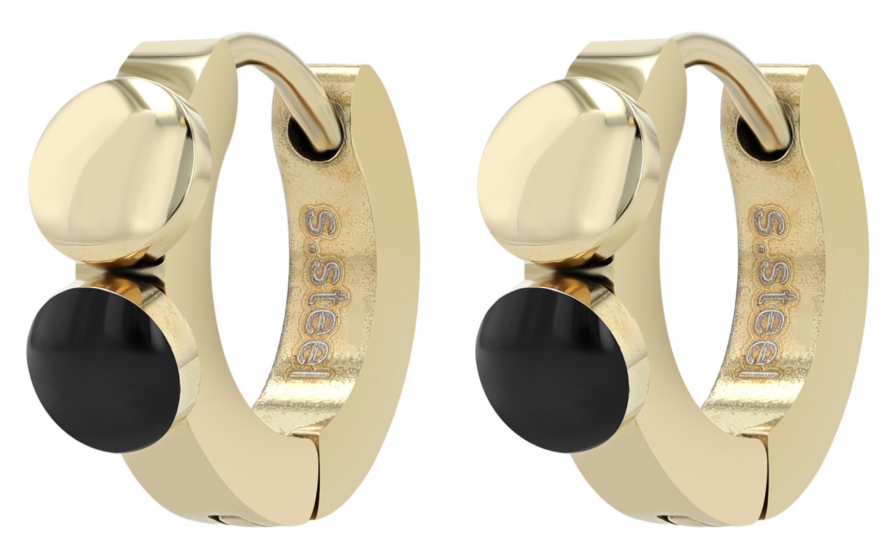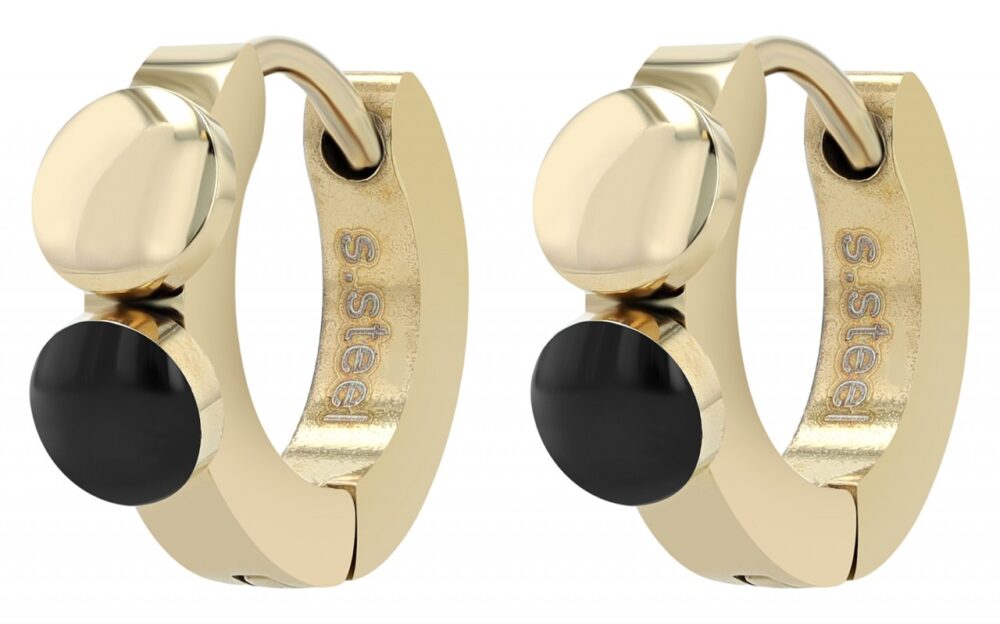 Os brincos de argola articulados são feitos de aço inoxidável de alta qualidade. Eles têm uma altura de 13 mm, uma largura de 3 mm e uma espessura de material de 2 mm. O acabamento de superfície altamente polido garante um ótimo brilho e o círculo de cor preta, que é incorporado abaixo de um círculo de cor dourada, aperfeiçoa o visual. Os brincos são fechados com um fecho de pressão prático, fácil de usar e que garante uma fixação segura no furo da orelha.