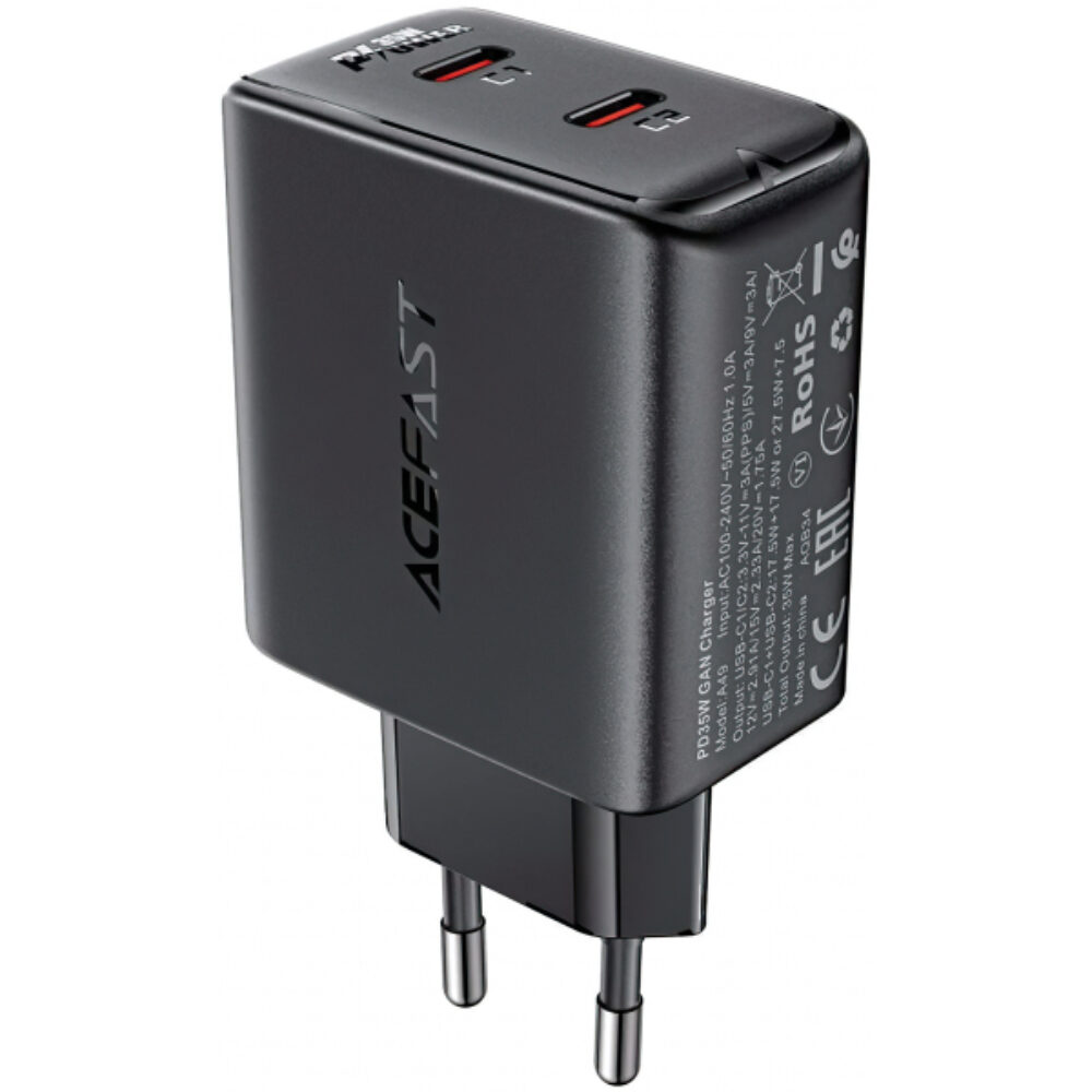 Carregador de parede Acefast A49, 35W, 3A, 2 x USB-C, preto