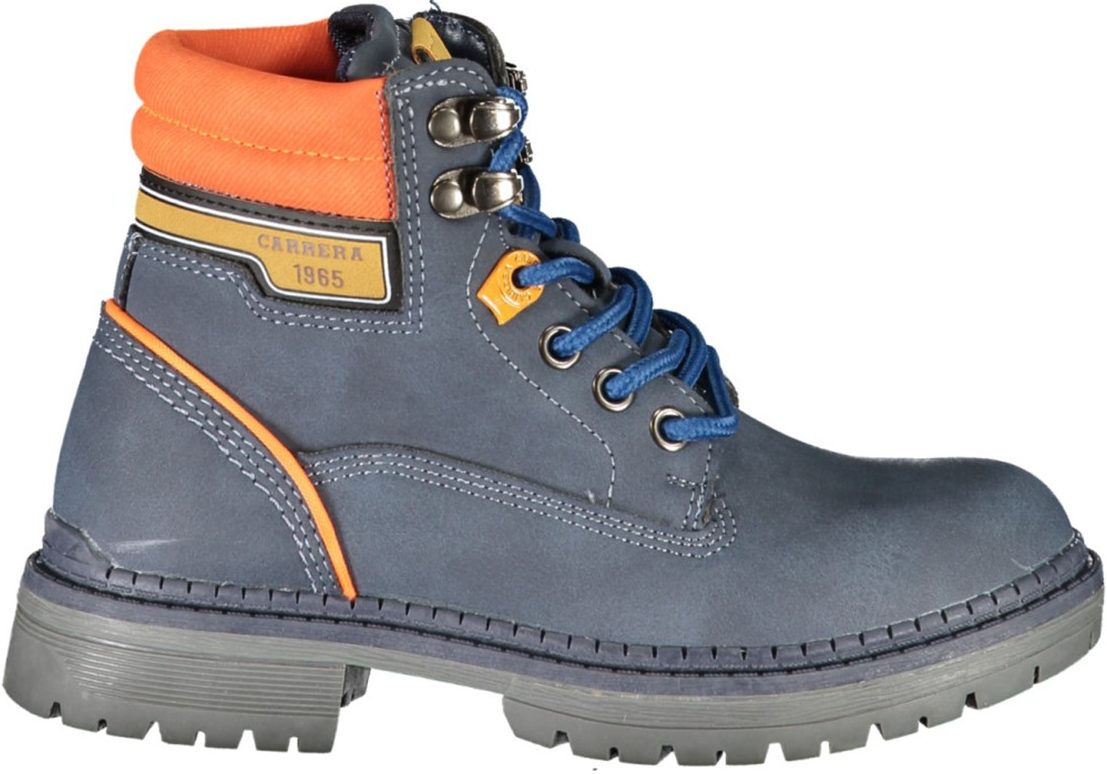 Bota com atacadores e fecho zíper lateral, detalhes de contraste, logótipo.