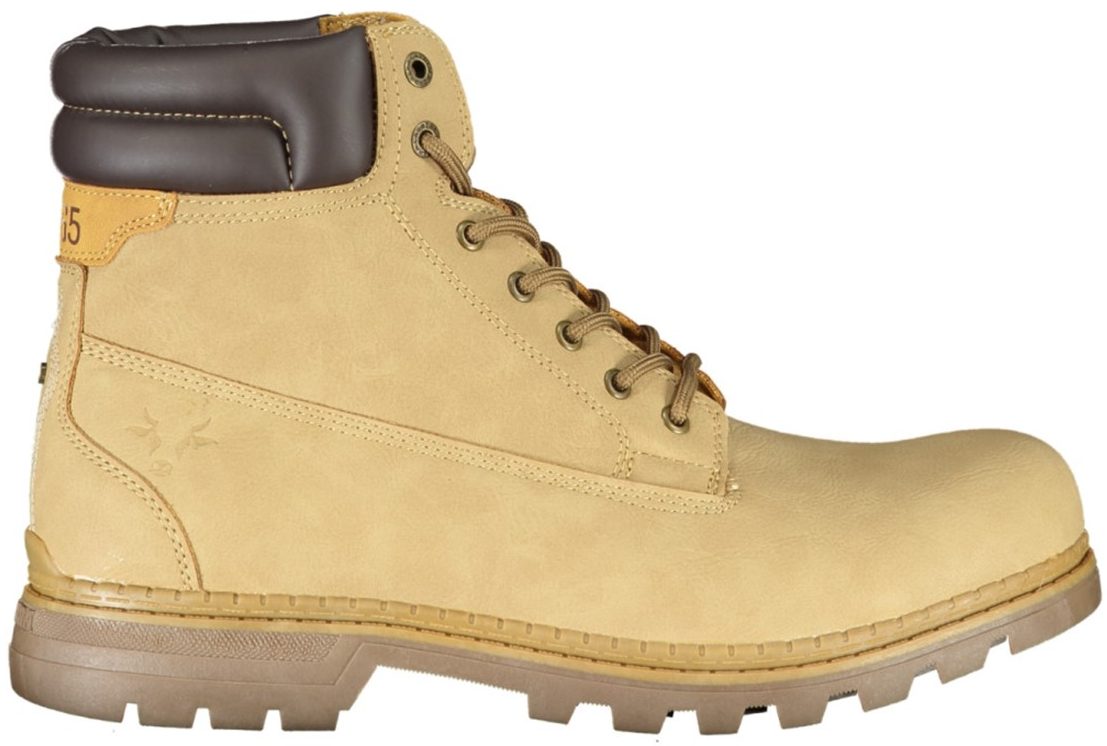 Bota com atacadores, detalhes de contraste, logótipo.
