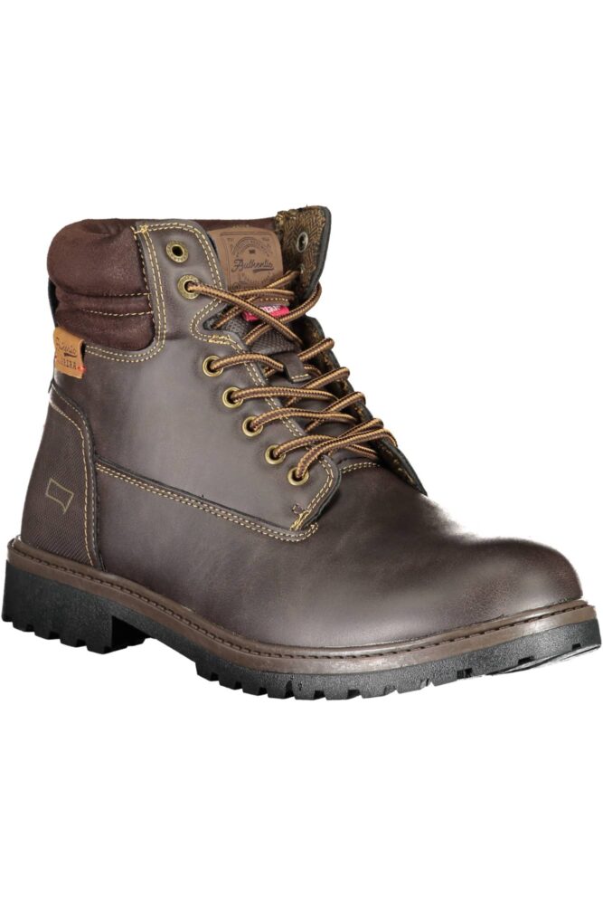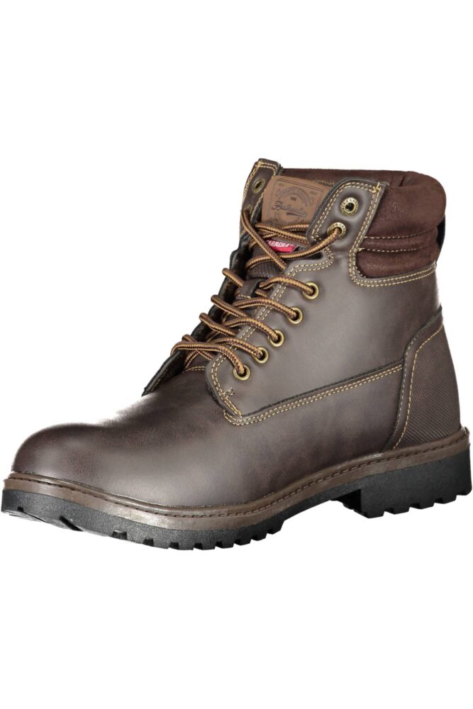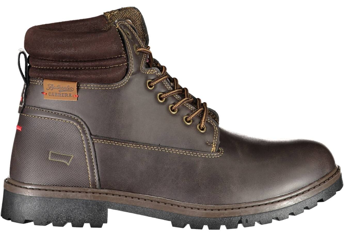 Bota com atacadores, detalhes de contraste, logótipo.