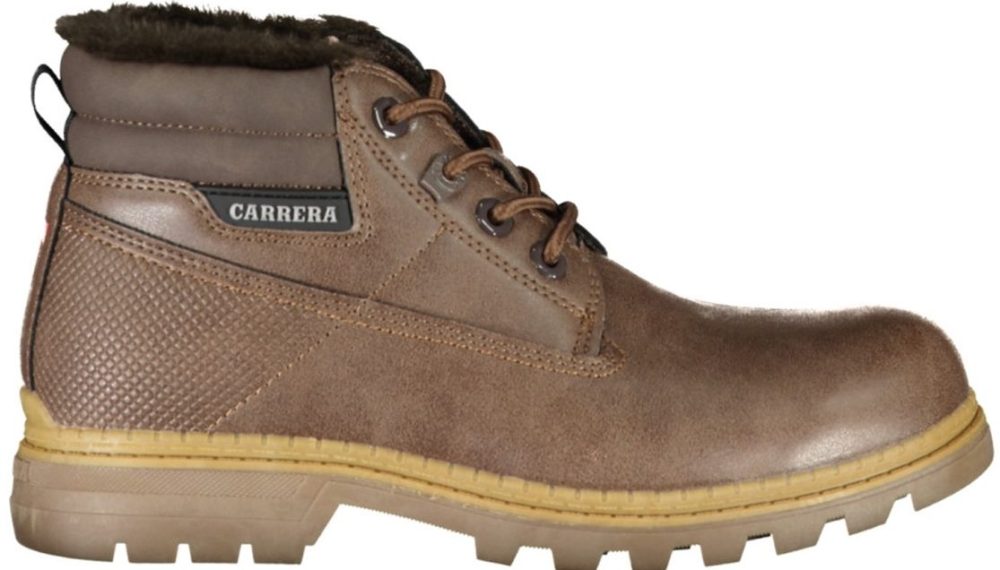 Bota com atacadores, detalhes de contraste, logótipo.