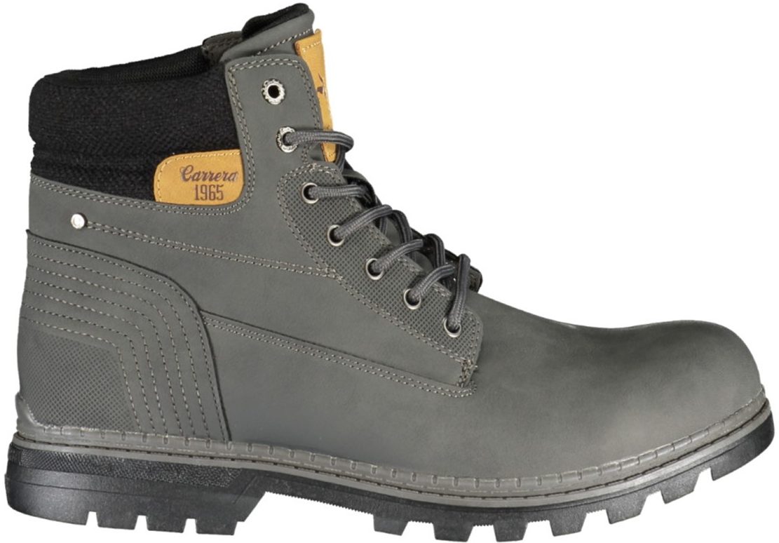 Bota com atacadores, detalhes contrastantes, logótipo.