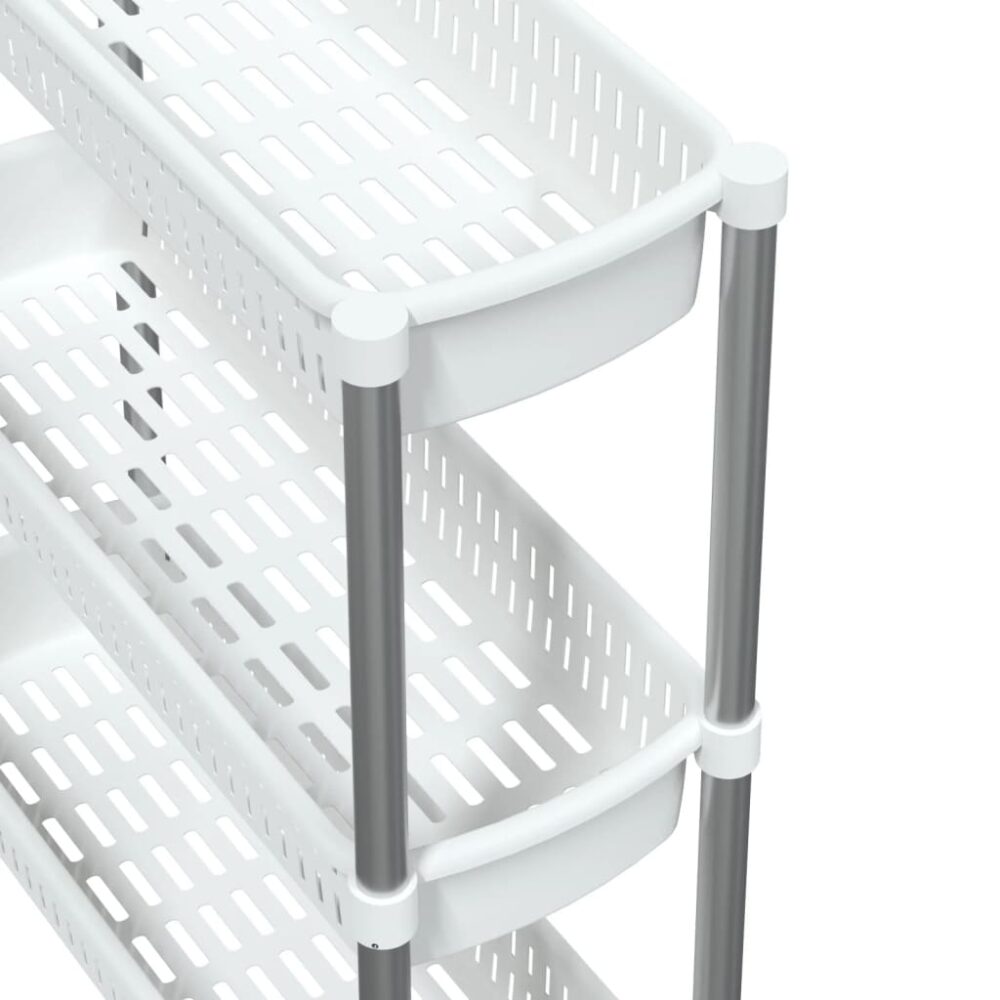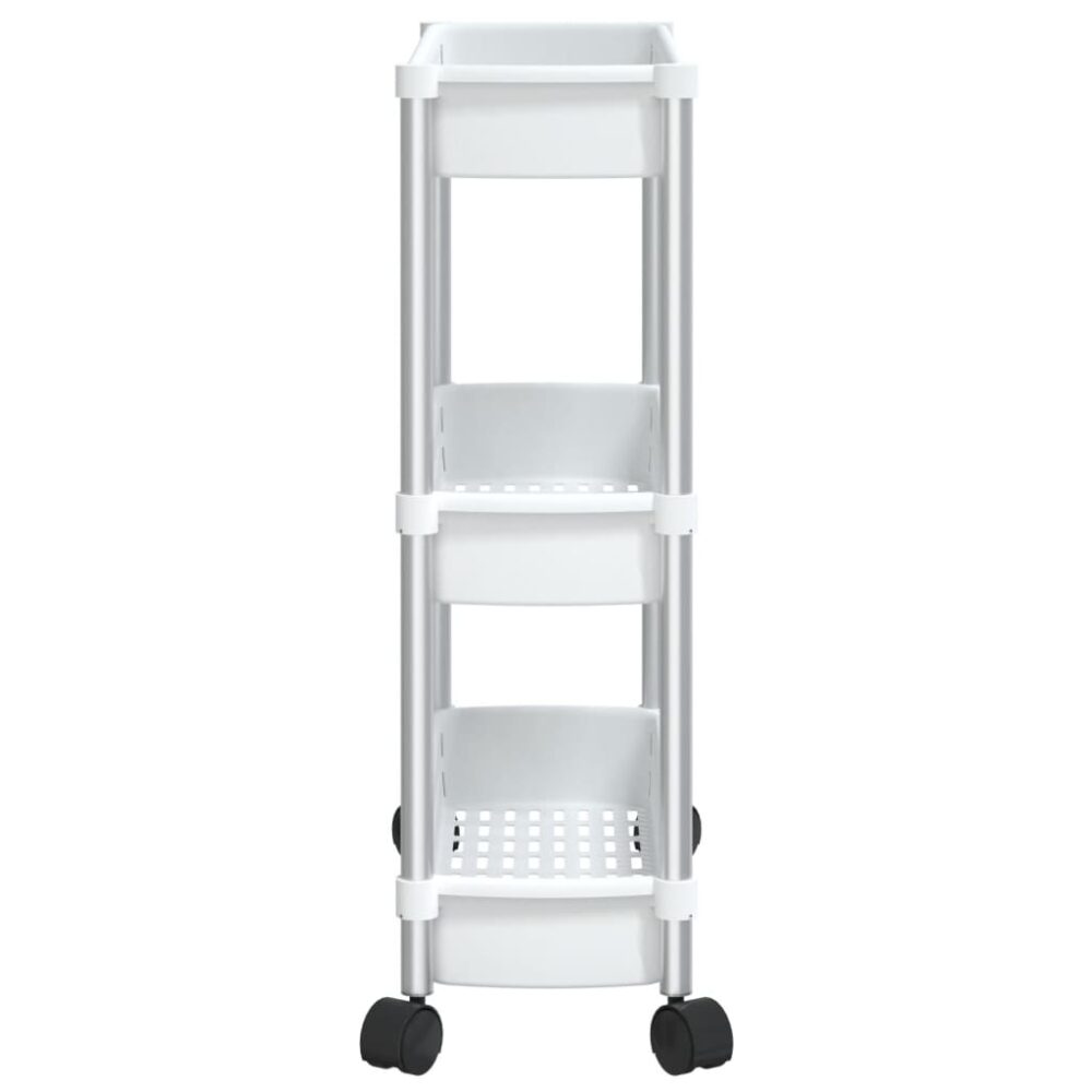 O carrinho de arrumação de 3 níveis foi perfeitamente concebido para aproveitar o espaço reduzido em casa. É adequado para uma variedade de cenários e pode ser colocado no quarto, espaço de estudo, cozinha, casa de banho e outros lugares. Estrutura resistente: a estrutura de alumínio deste carrinho de armazenamento assegura robustez e estabilidade.Arrumação multifuncional: o carrinho de organização pode ser colocado na cozinha, sala de estar, casa de banho e outros lugares. Pode usá-lo para colocar artigos do dia-a-dia, especiarias, produtos de higiene pessoal, livros, etc. Além disso, ajuda-o a organizar e a arrumar as suas coisas para se livrar da confusão.Fácil de mover: graças às suas 4 rodas, o organizador é de mobilidade conveniente.