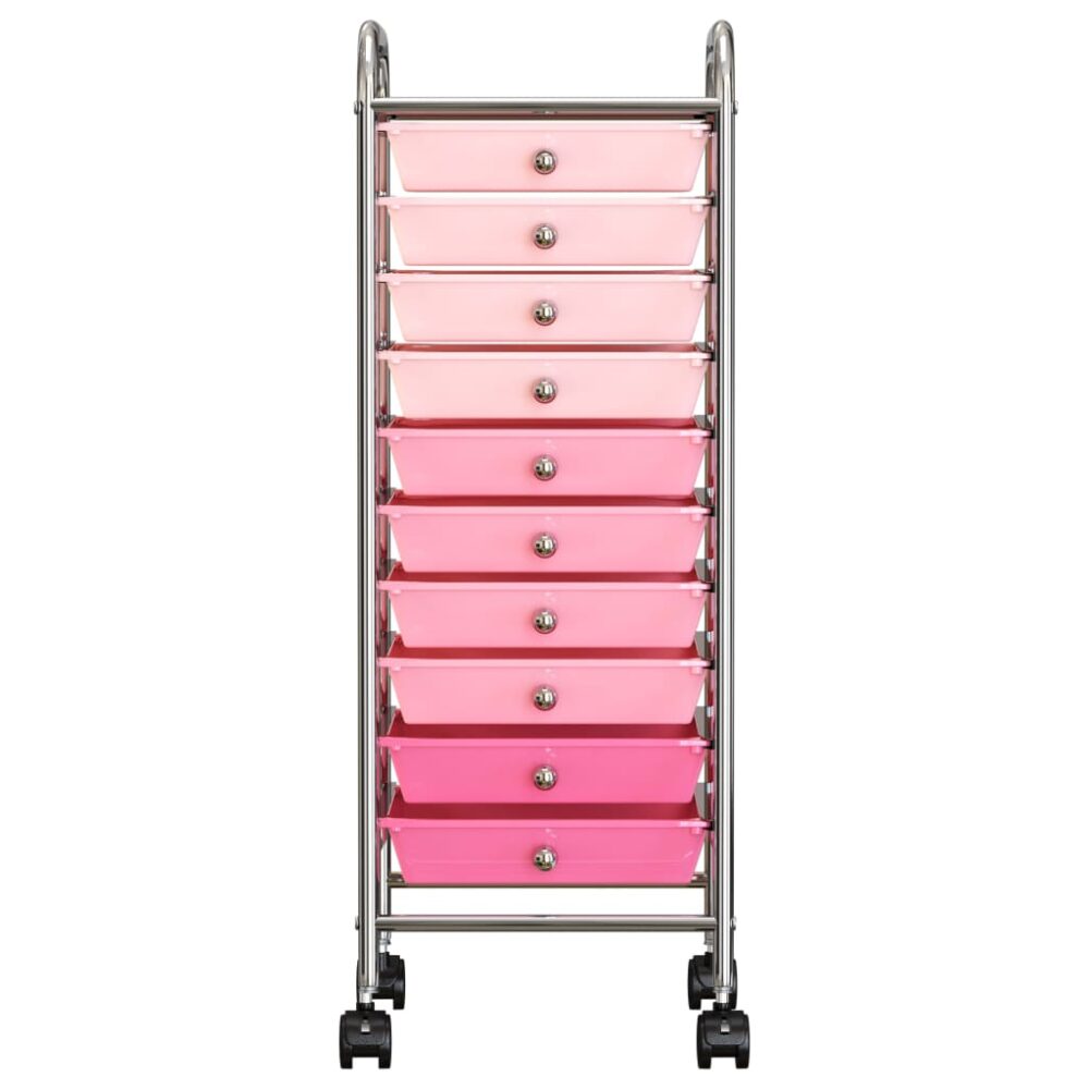 Este carrinho com gavetas possui um estilo conciso e prático, destinando-se a proporcionar-lhe um amplo espaço para manter o seu escritório e acessórios de beleza organizados e ao seu alcance. A estrutura cromada fornece um suporte de peso resistente e durável e os 10 cestos removíveis possuem espaço suficiente para colocar os seus itens. São fáceis de remover e limpar. As 4 rodas giratórias integradas facilitam ainda o transporte e a arrumação. Este carrinho de arrumação pode ser montado em pouco tempo.