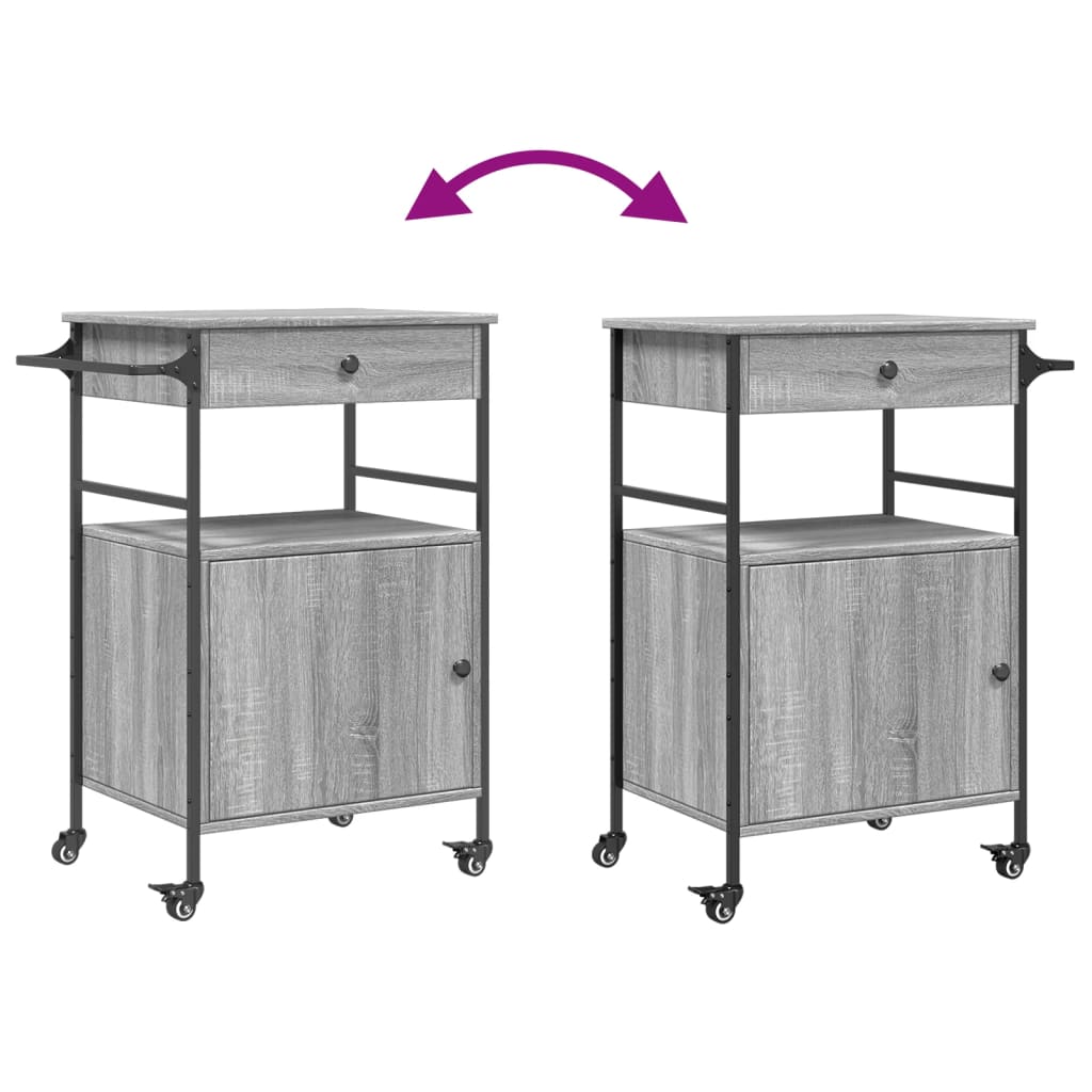 Carrinho de cozinha 56x43x89,5cm derivados madeira cinza sonoma - PORTES GRÁTIS