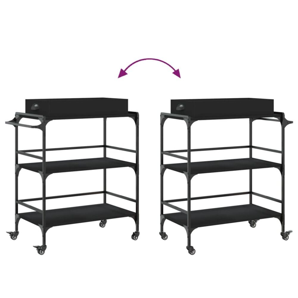 Carrinho de cozinha 81,5x41x92,5 cm derivados de madeira preto - PORTES GRÁTIS