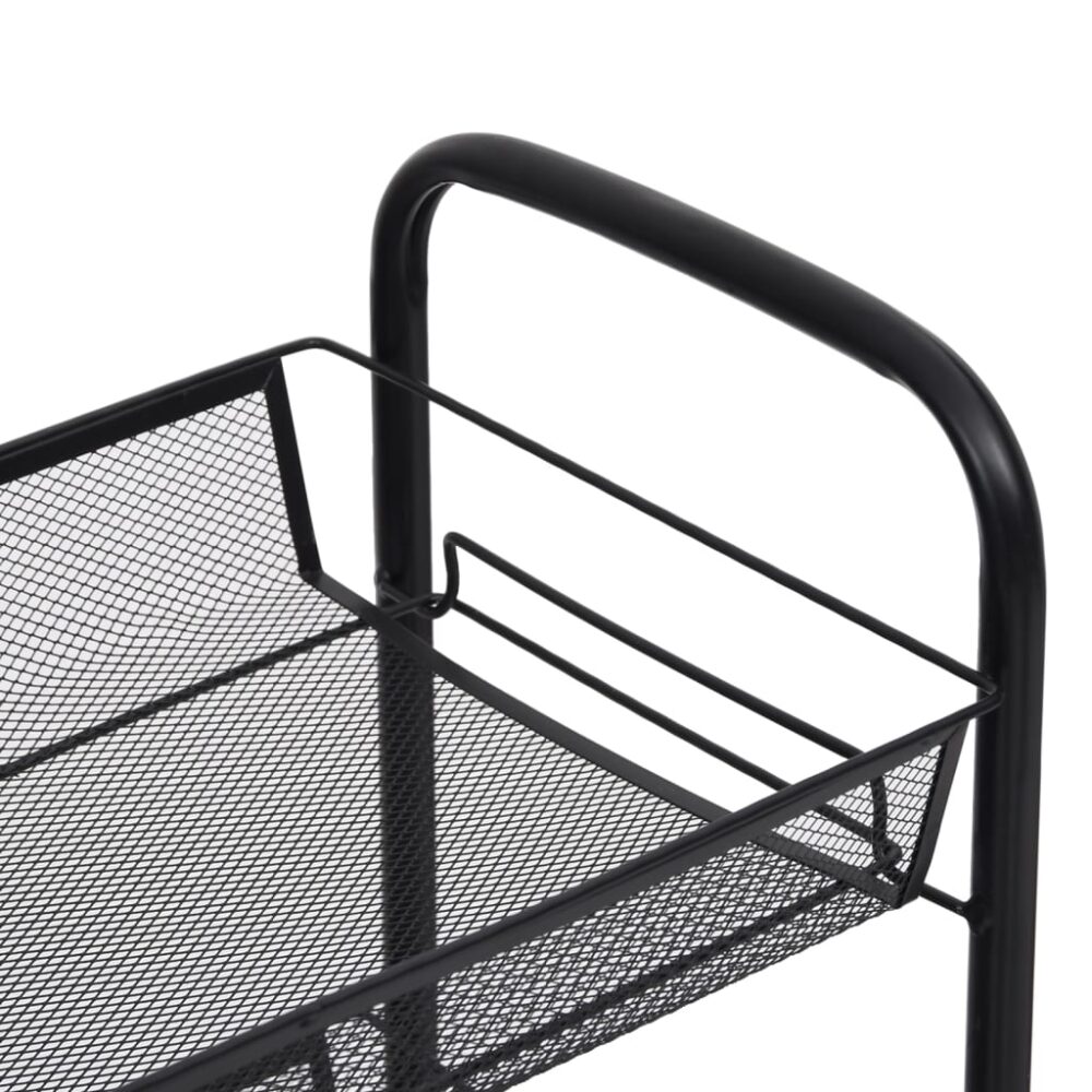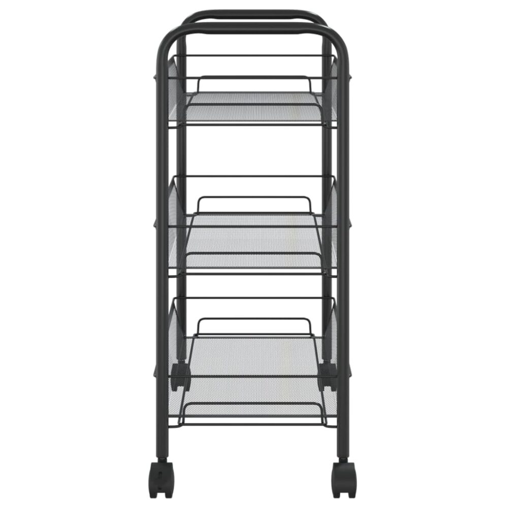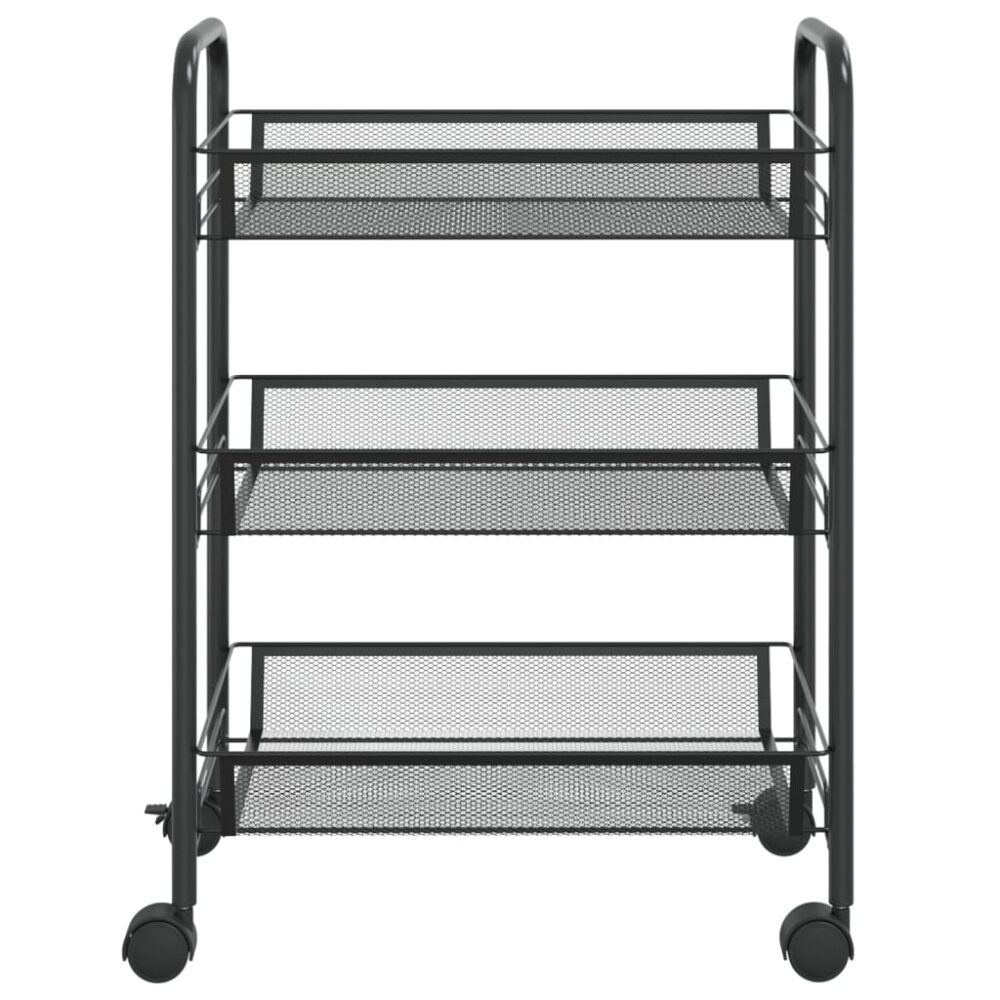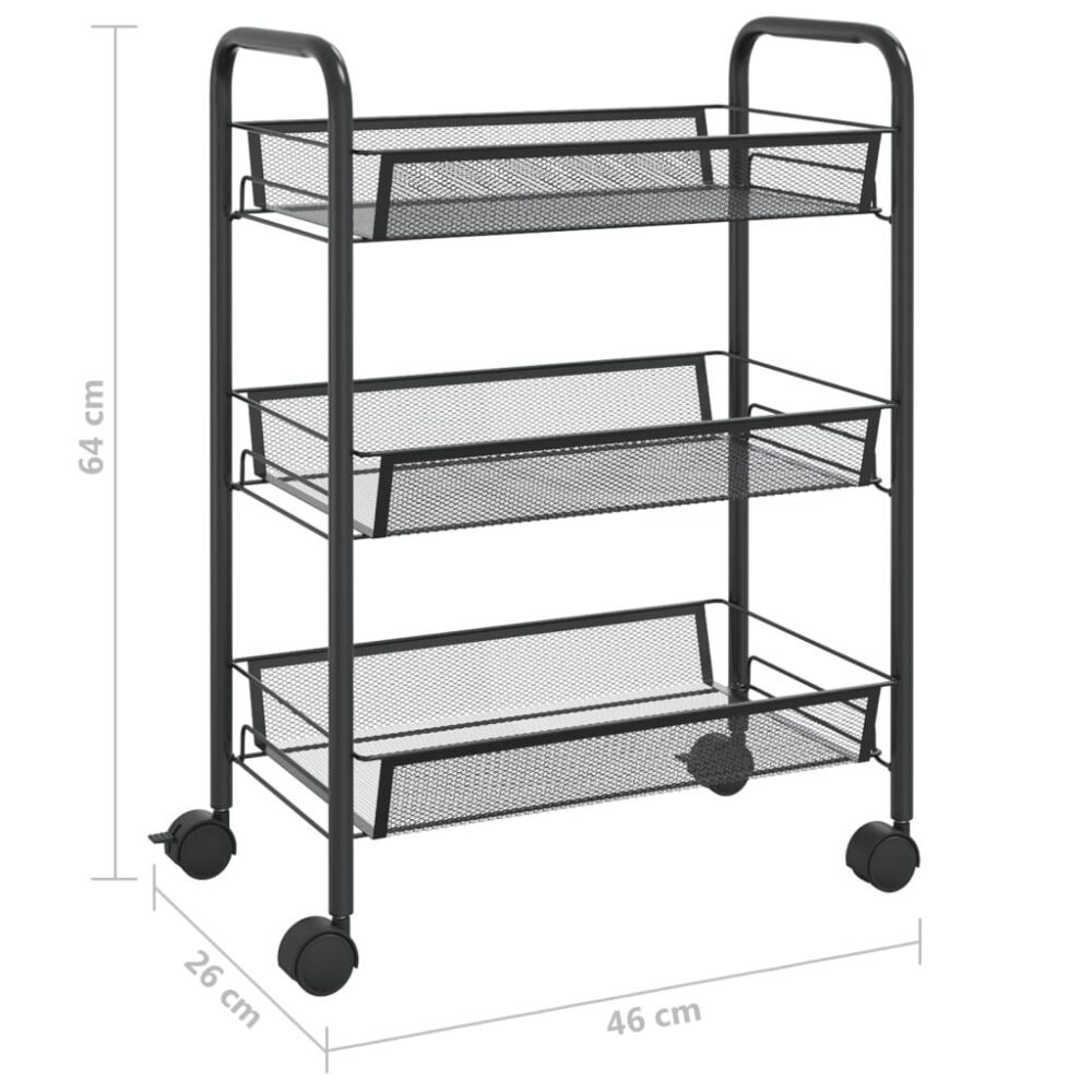 Carrinho de cozinha com 3 prateleiras ferro 46x26x64 cm preto - PORTES GRÁTIS