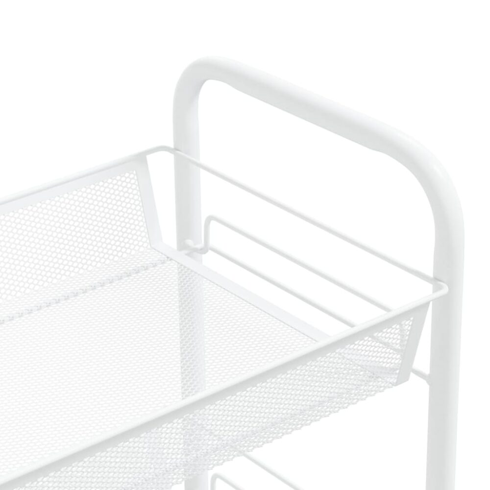 Este carrinho é perfeito para organizar coisas na cozinha, casa de banho, escritório, etc. Este carrinho doméstico apresenta uma construção em ferro, tornando-o robusto e durável. O carrinho economizador de espaço dispõe de 4 rodas, sendo que 2 delas possuem travões para facilitar a deslocação e a imobilização. Os cestos em rede de arame são fortes e removíveis, proporcionando um espaço de arrumação adicional e uma plena utilização da divisão. O carrinho é ideal para arrumar brinquedos, chaves, comida, etc.