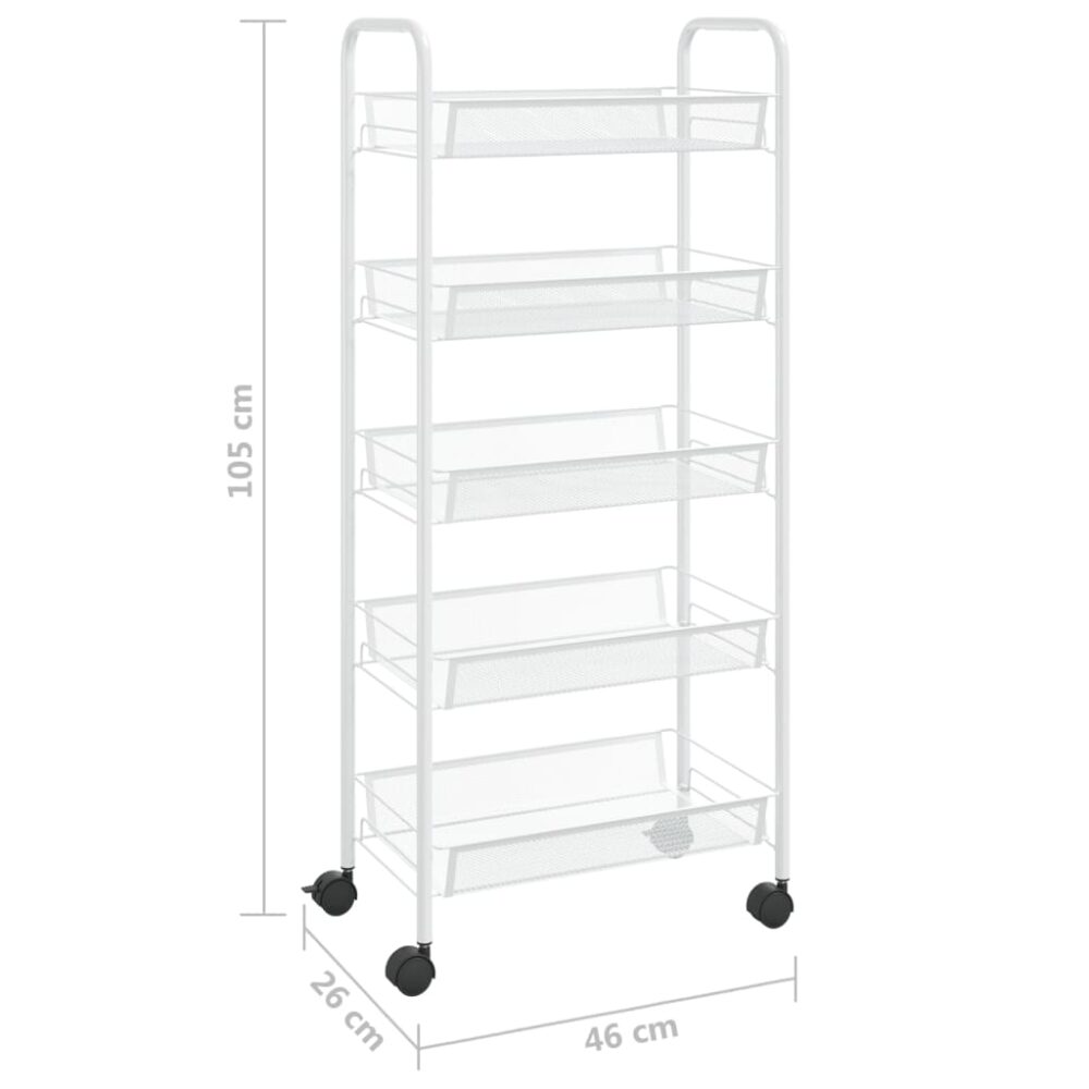 Carrinho de cozinha com 5 prateleiras ferro 46x26x105 cm branco - PORTES GRÁTIS
